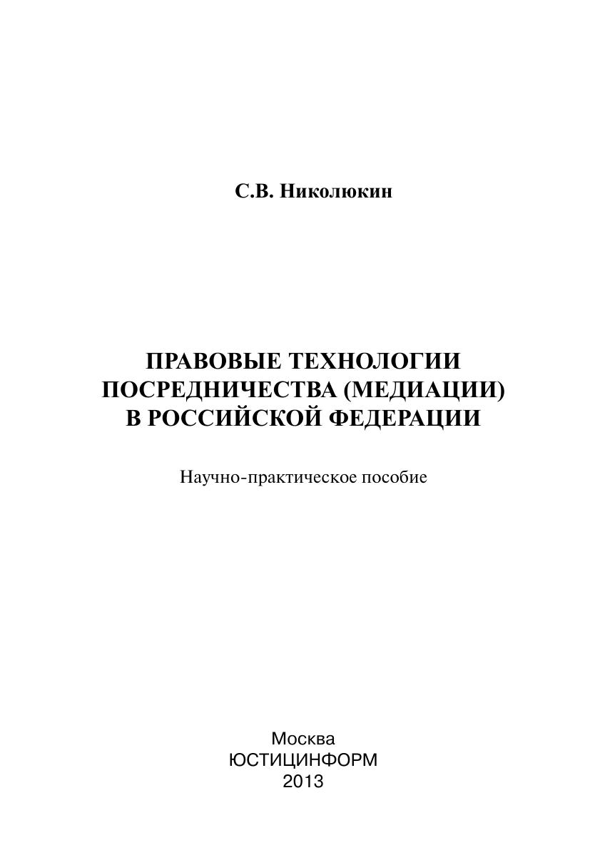 Правовые технологии посредничества (медиации) в Российской Федерации : научно-практическое пособие