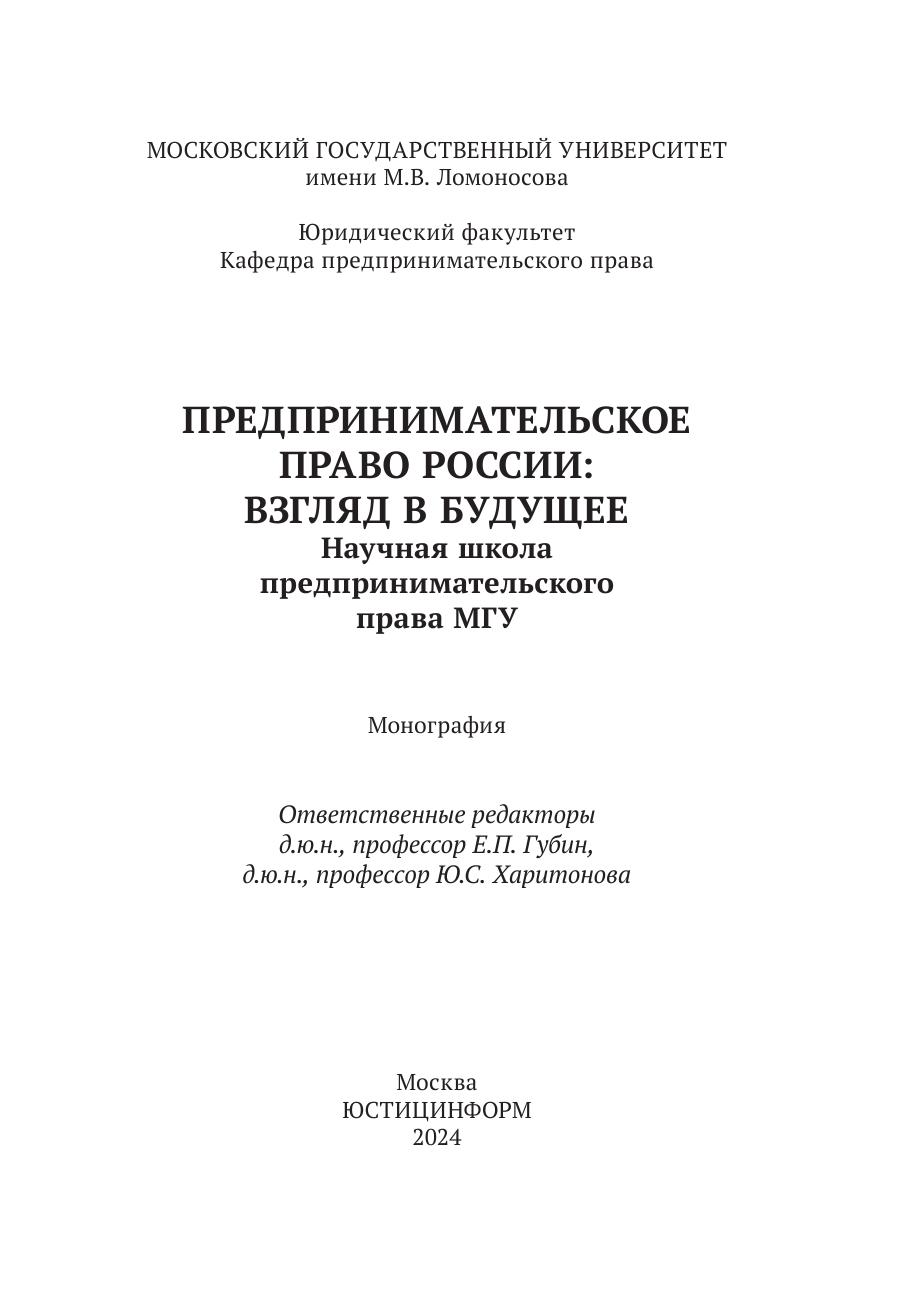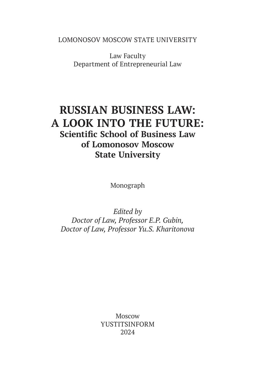 Предпринимательское право России: взгляд в будущее: научная школа предпринимательского права МГУ