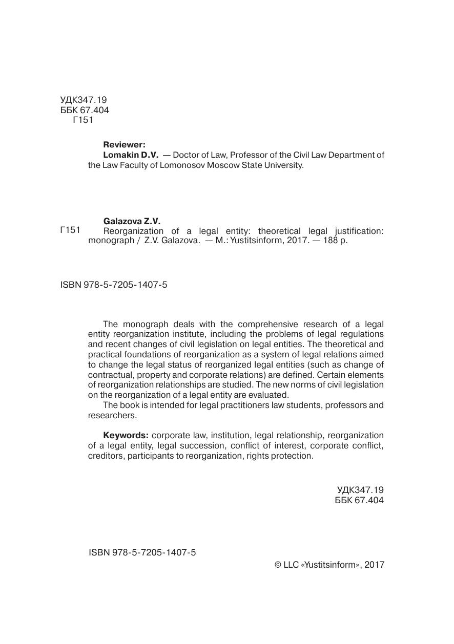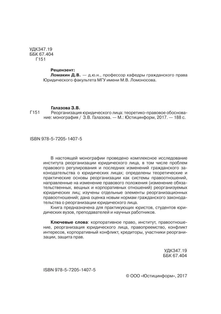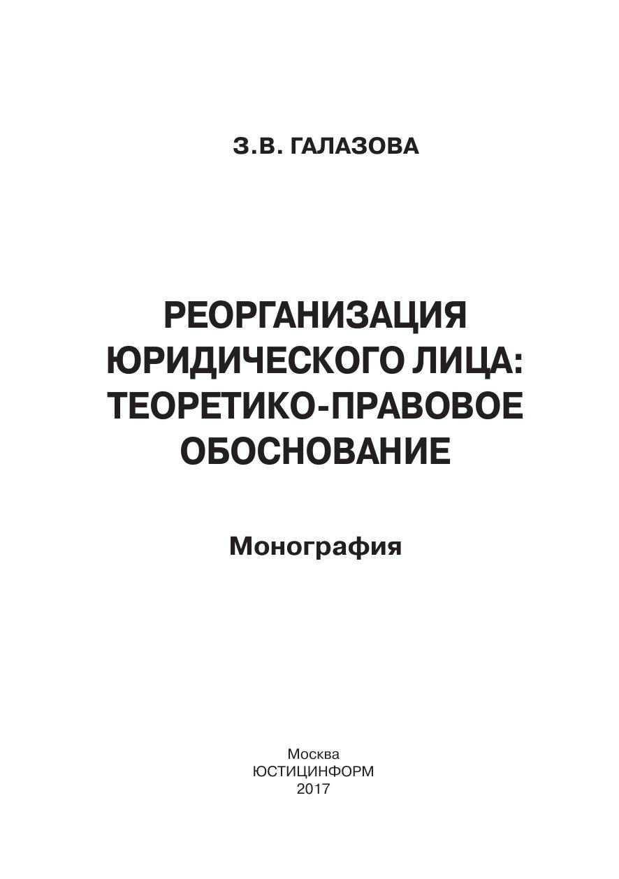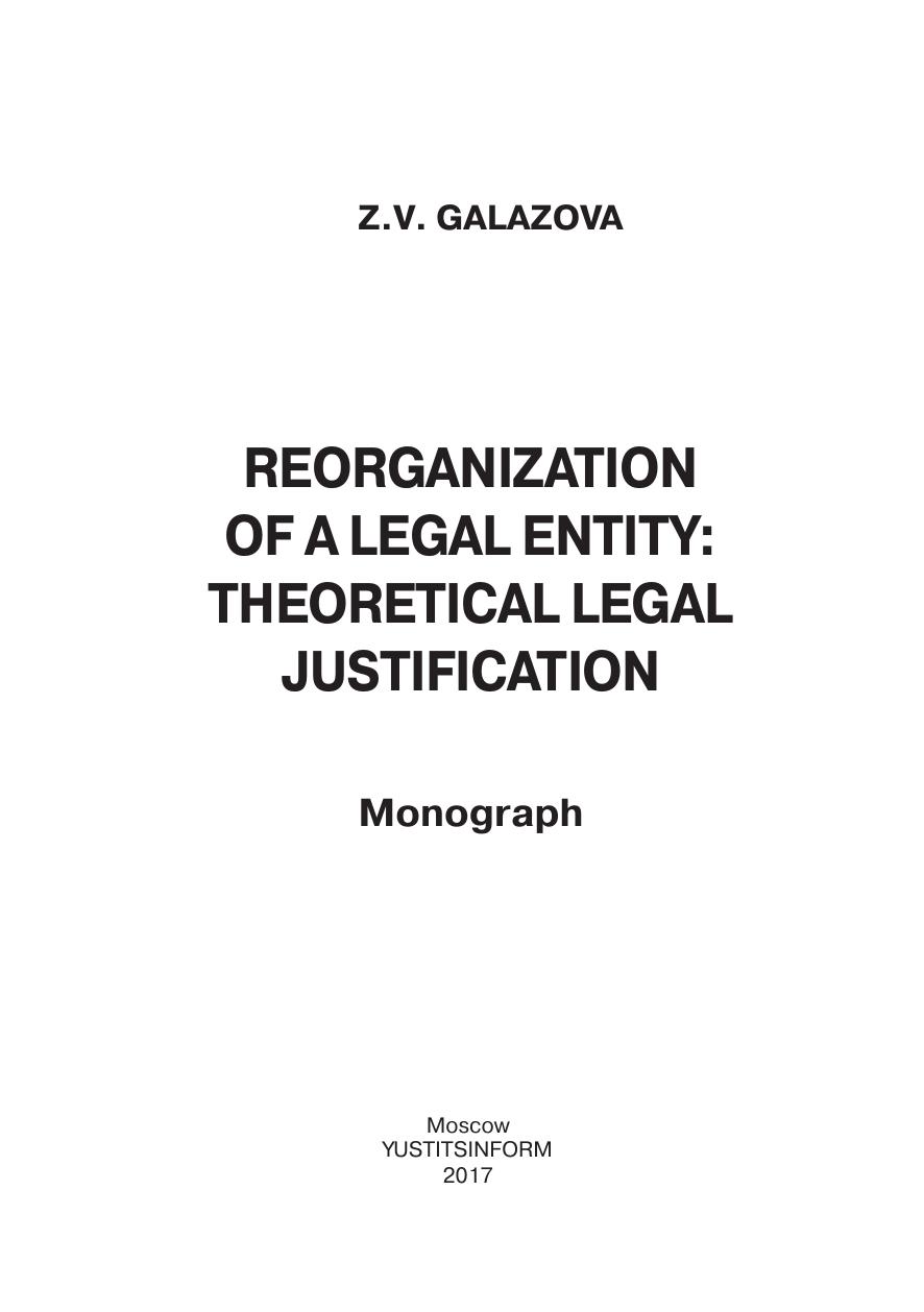Реорганизация юридического лица: теоретико-правовое обоснование: монография