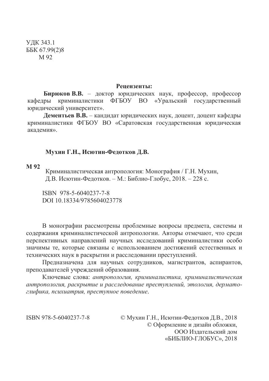 Ключевые слова: антропология, криминалистика, криминалистическая