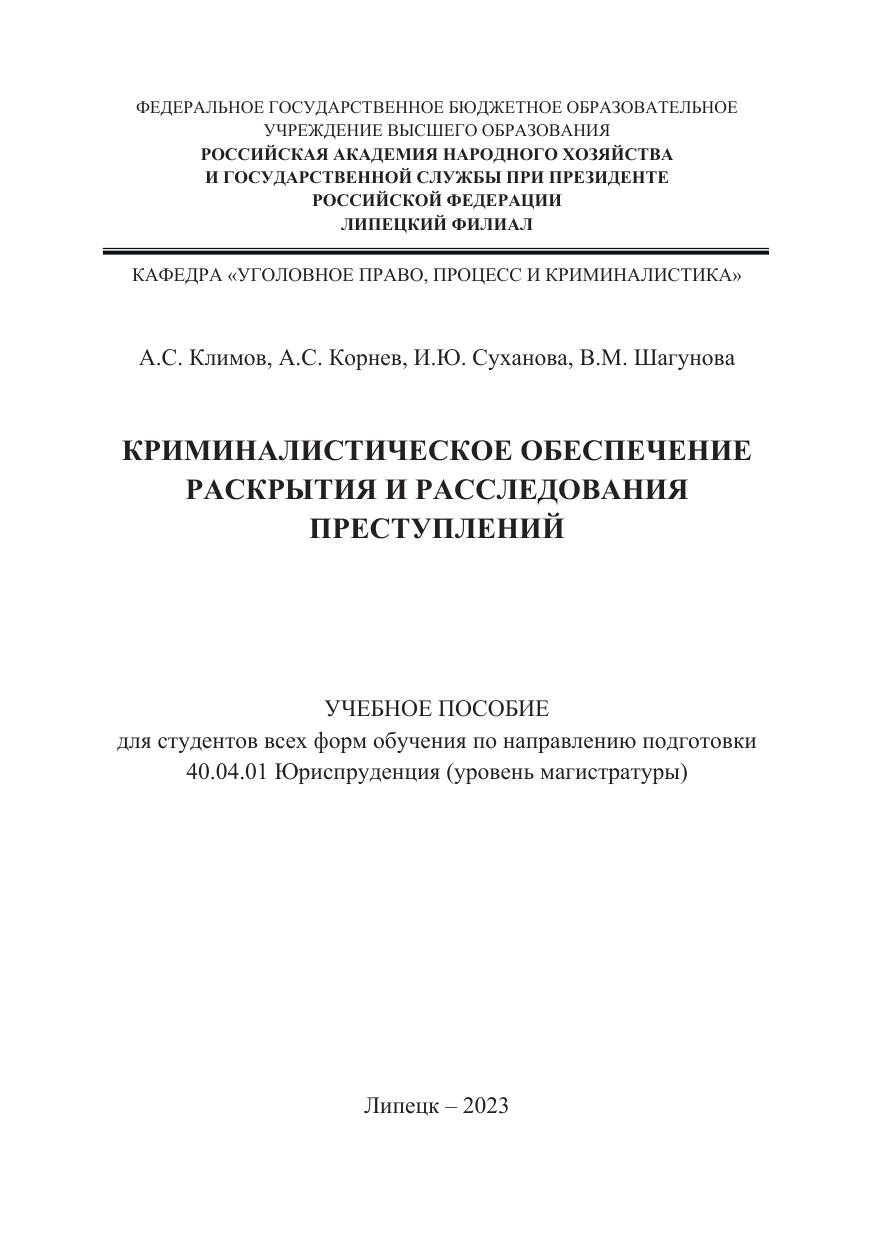 Криминалистическое обеспечение раскрытия и расследования преступлений