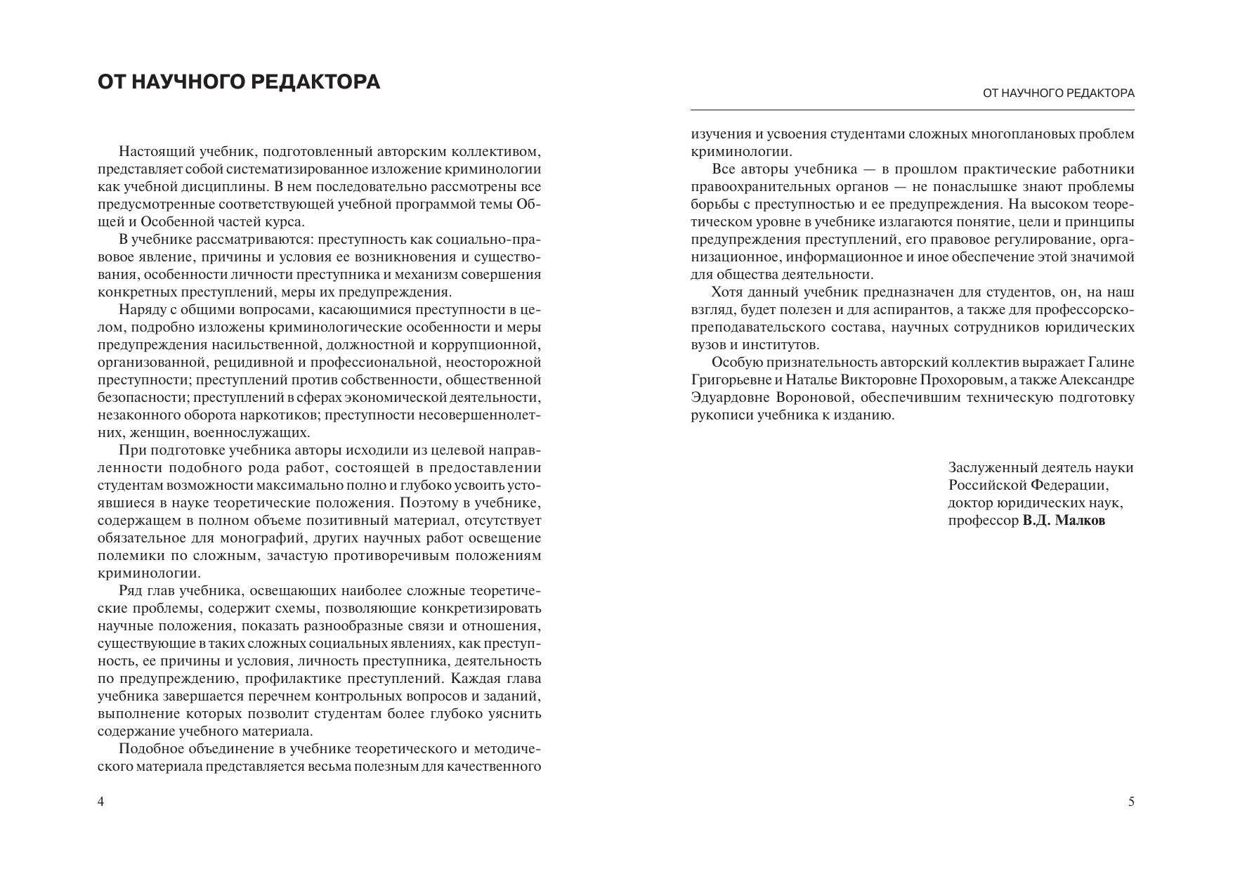В учебнике рассматриваются основные теоретические положения и даются практические рекомендации, необходимые студентам для глубокого усвоения обязательной учебной дисциплины «Криминология» и их последующего использования в своей работе в условиях формирования гражданского общества и правового государства. Изучениеположений этой дисциплины призвано сформировать у студентов научно обоснованное представление о преступности как объективно присущем современному обществу явлении, о возможности позитивного воздействия на нее с помощью общих и специально-криминологических мер ее предупреждения. В учебнике также раскрываются криминологические особенности отдельных групп преступлений и их предупреждения.Учебник, предназначенный для студентов, может представлять интерес для преподавателей, аспирантов, научных сотрудников юридических высших учебных заведений, а также для практических работников правоохранительных органов