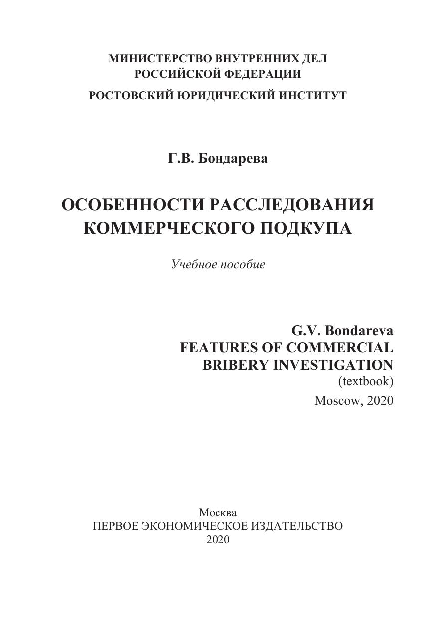 В учебном пособии рассмотрены особенности первоначального этапа расследования коммерческого подкупа.