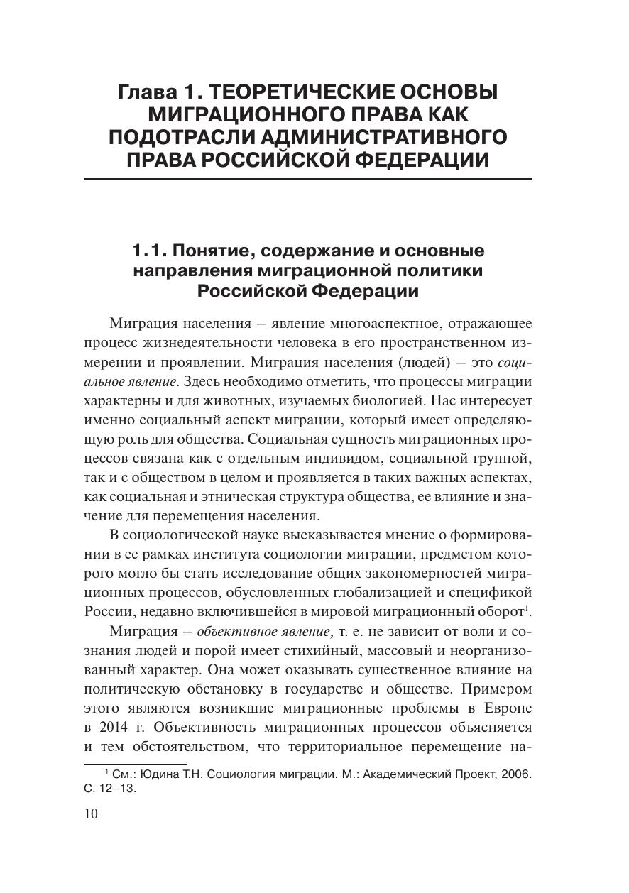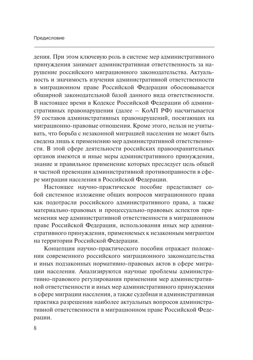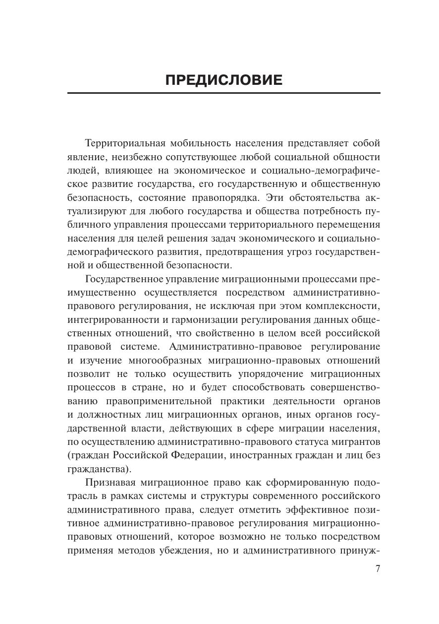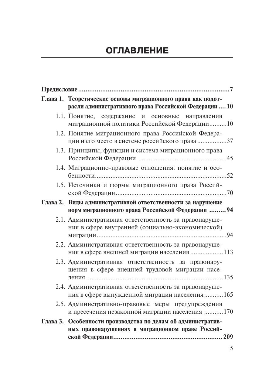 В научно-практическом пособии рассмотрено понятие и место миграционного права в системе российского права, его принципы, источники, субъекты, миграционно-правовые отношения, учебные и практические вопросы административной ответственности за нарушение установленных миграционных правил, регулируемых российским миграционным законодательством: внутренней (социально-экономической), внешней, внешней трудовой, вынужденной и незаконной миграции населения. Рекомендовано профессорско-преподавательскому составу, научным и практическим работникам, занимающимся проблемами правового регулирования миграции, студентам и курсантам юридических высших учебных заведений и факультетов и всем интересующимся проблемами миграции населения. Ключевые слова: миграция населения, государственное управление, миграционное право, административный процесс, административная юрисдикция, административная ответственность, производство по делам об административных правонарушениях