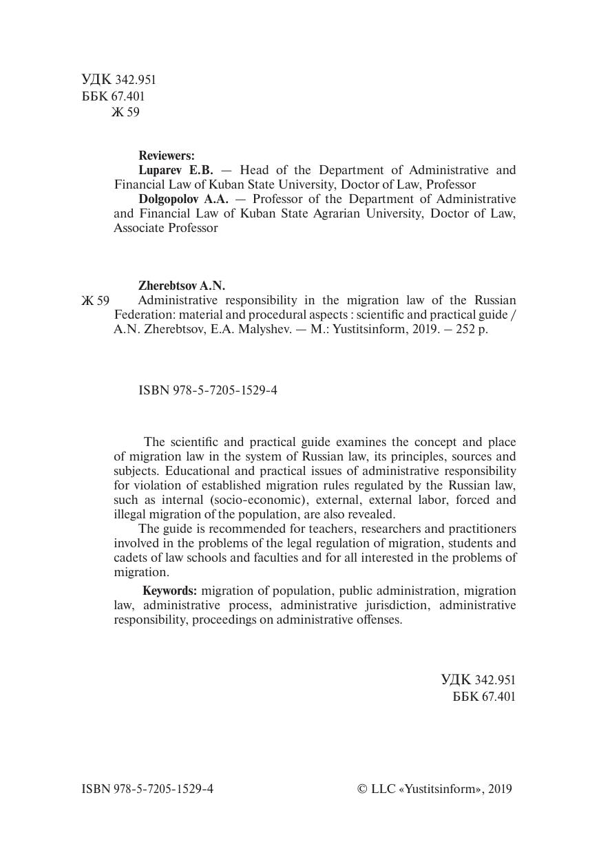Административная ответственность в миграционном праве Российской Федерации: материальные и процессуальные аспекты