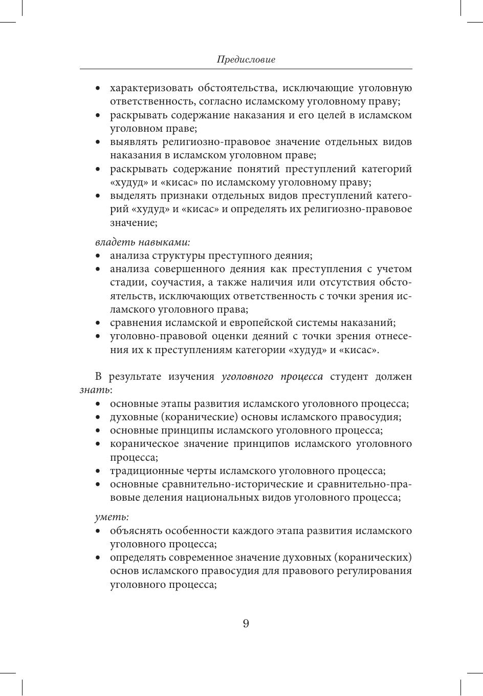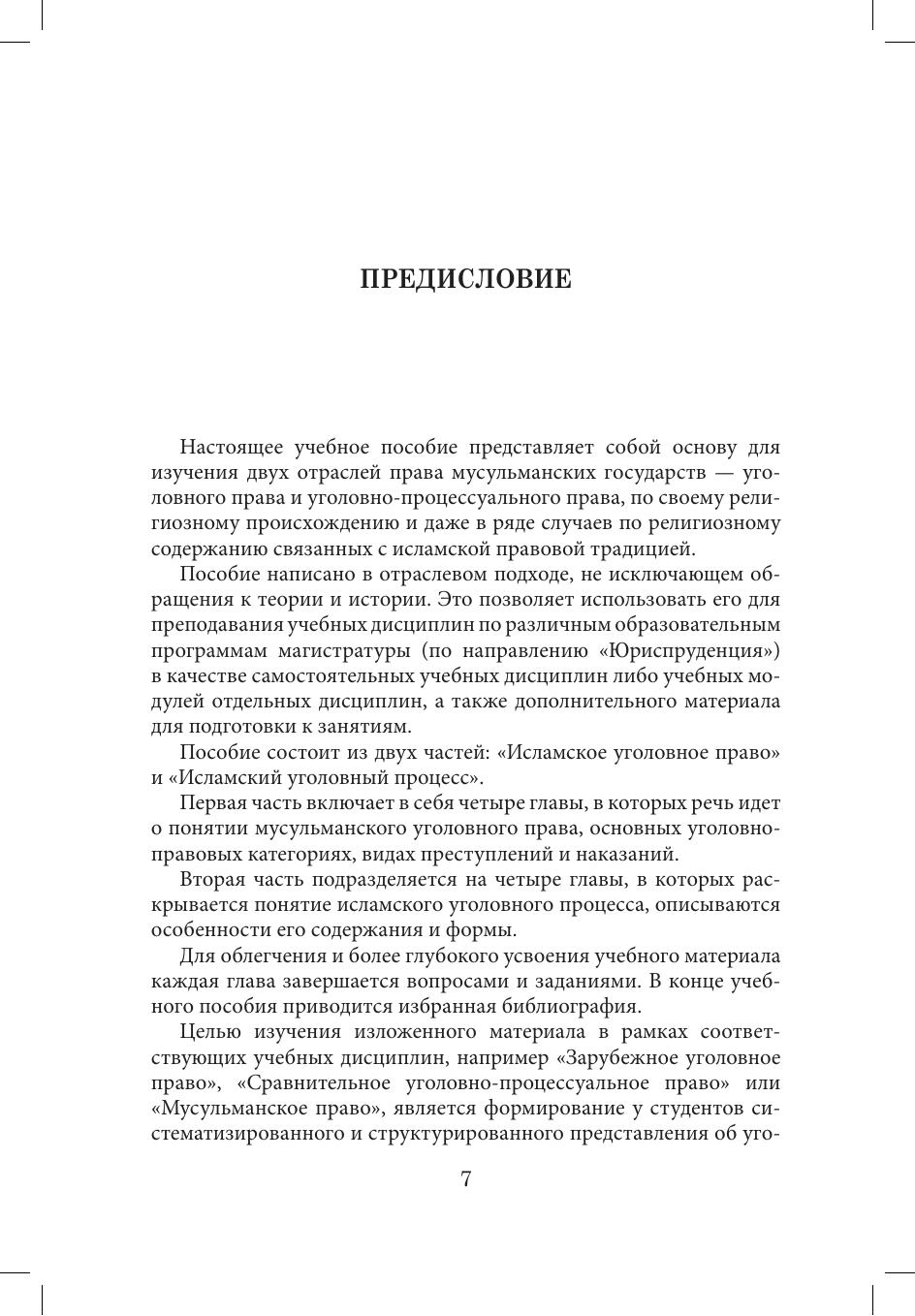 В учебном пособии рассматриваются основные положения уголовного и уголовно-процессуального права современных мусульманских государств с учетом исламской традиции. Раскрываются главные черты исламского уголовного права и религиозная специфика его отдельных институтов. Дается характеристика коранических основ, принципов, общих черт и отличительных типологических признаков исламского уголовного процесса.