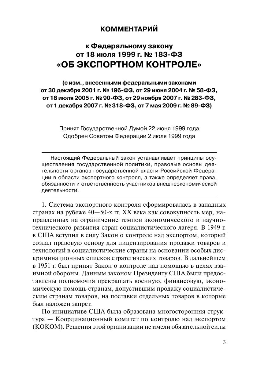 Комментарий к Федеральному закону от 18 июля 1999 г. № 183-ФЗ «Об экспортном контроле» (постатейный)