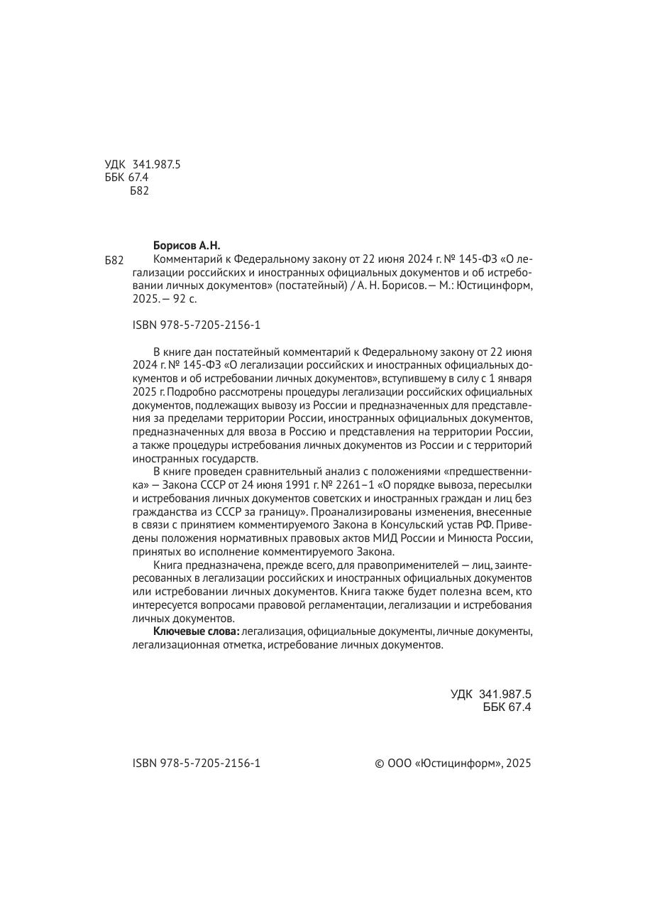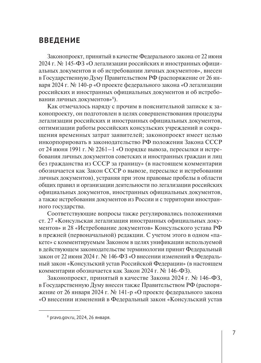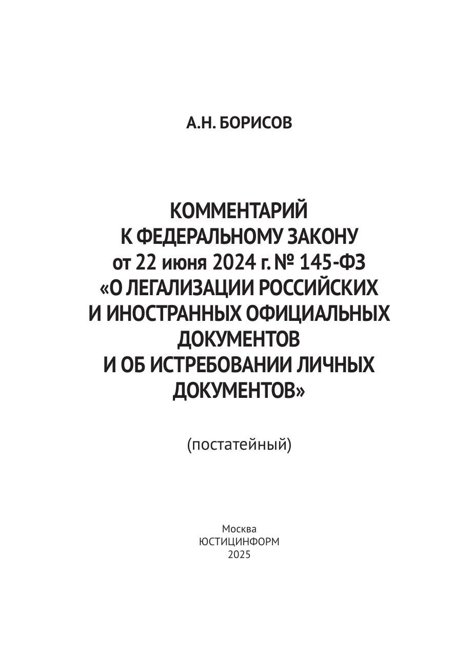 Комментарий к Федеральному закону от 22 июня 2024 г. № 145-ФЗ «О легализации российских и иностранных официальных документов и об истребовании личных документов» (постатейный)