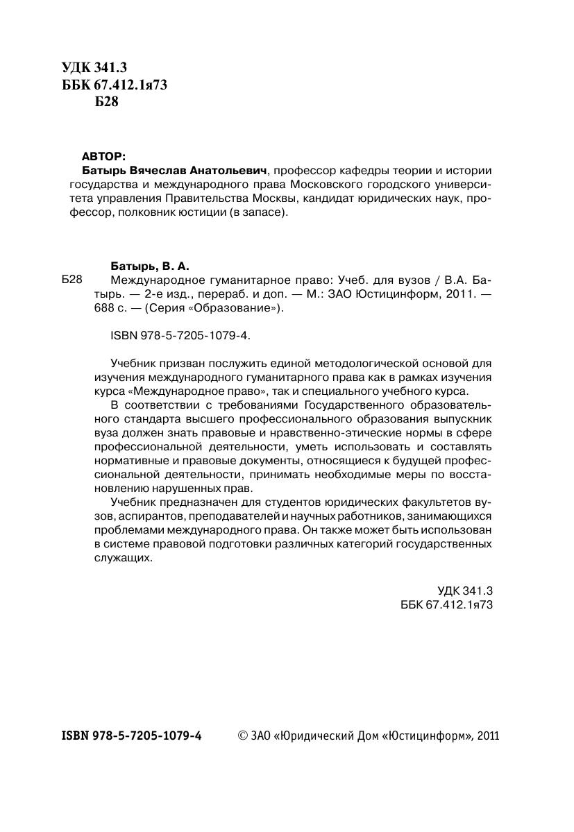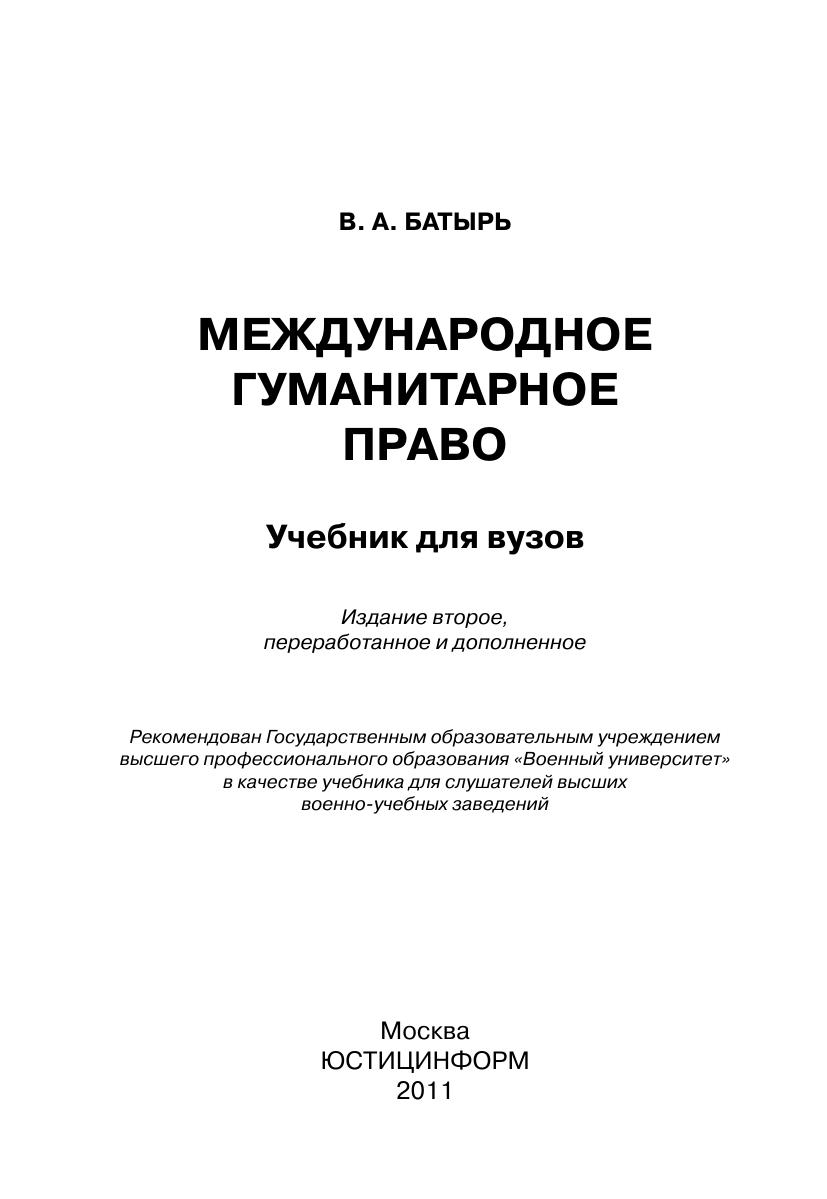 Учебник призван послужить единой методологической основой для изучения международного гуманитарного права как в рамках изучения курса «Международное право», так и специального учебного курса.В соответствии с требованиями Государственного образовательного стандарта высшего профессионального образования выпускник вуза должен знать правовые и нравственно-этические нормы в сфере профессиональной деятельности, уметь использовать и составлять нормативные и правовые документы, относящиеся к будущей профессиональной деятельности, принимать необходимые меры по восстановлению нарушенных прав.Учебник предназначен для студентов юридических факультетов вузов, аспирантов, преподавателей и научных работников, занимающихся проблемами международного права. Он также может быть использован в системе правовой подготовки различных категорий государственных служащих.