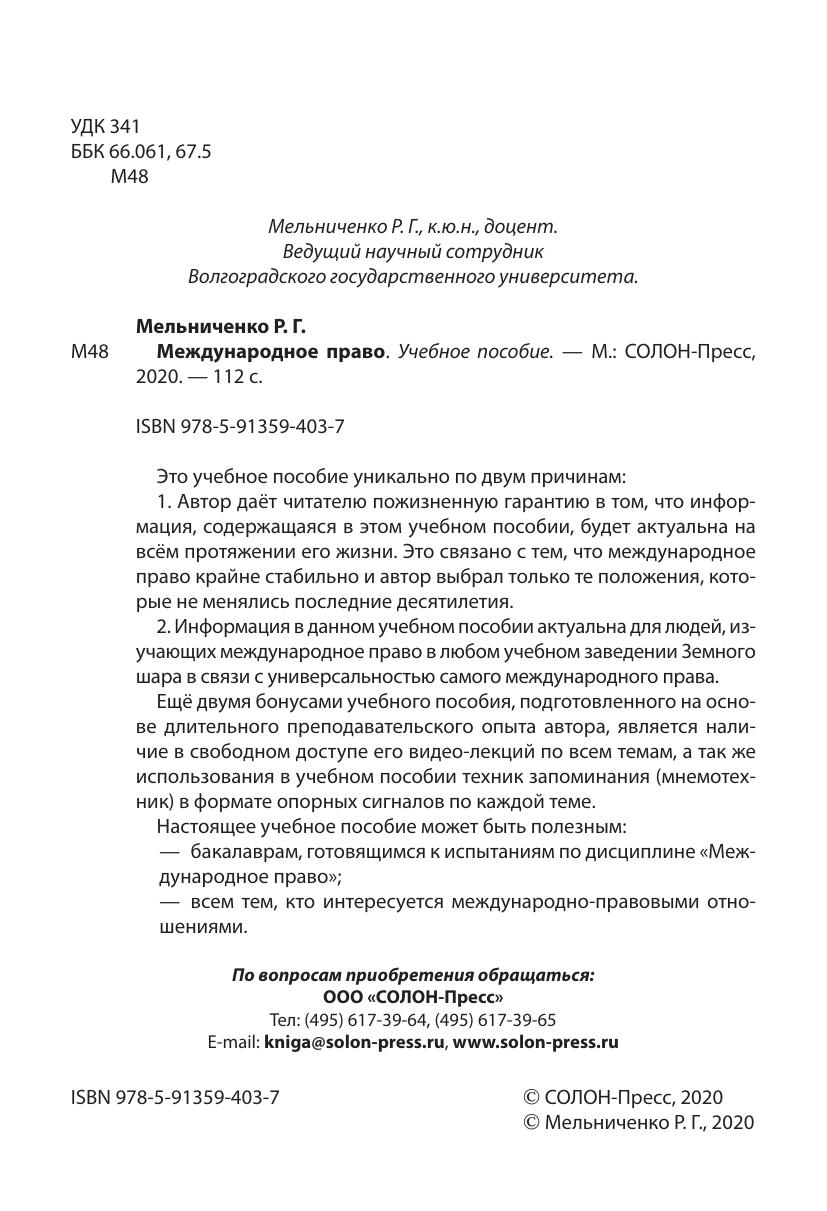 2. Информация в данном учебном пособии актуальна для людей, изучающих международное право в любом учебном заведении Земного шара в связи с универсальностью самого международного права.