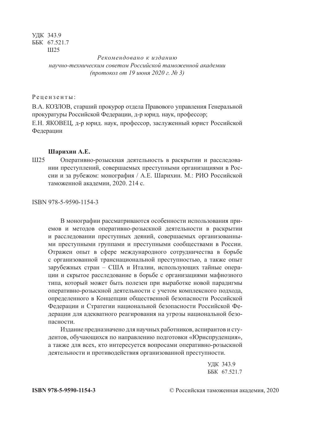 Издание предназначено для научных работников, аспирантов и студентов, обучающихся по направлению подготовки «Юриспруденция», а также для всех, кто интересуется вопросами оперативно-розыскной деятельности и противодействия организованной преступности.
