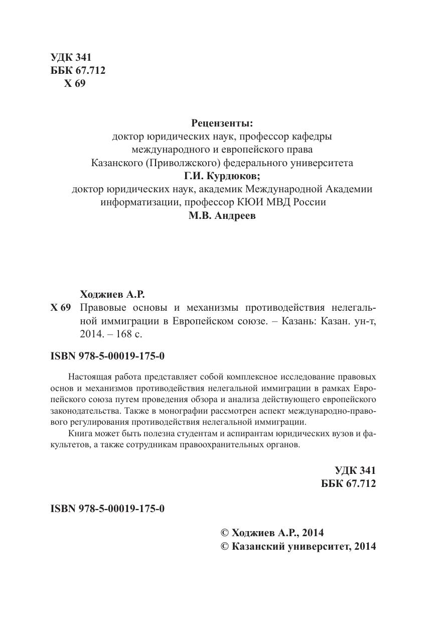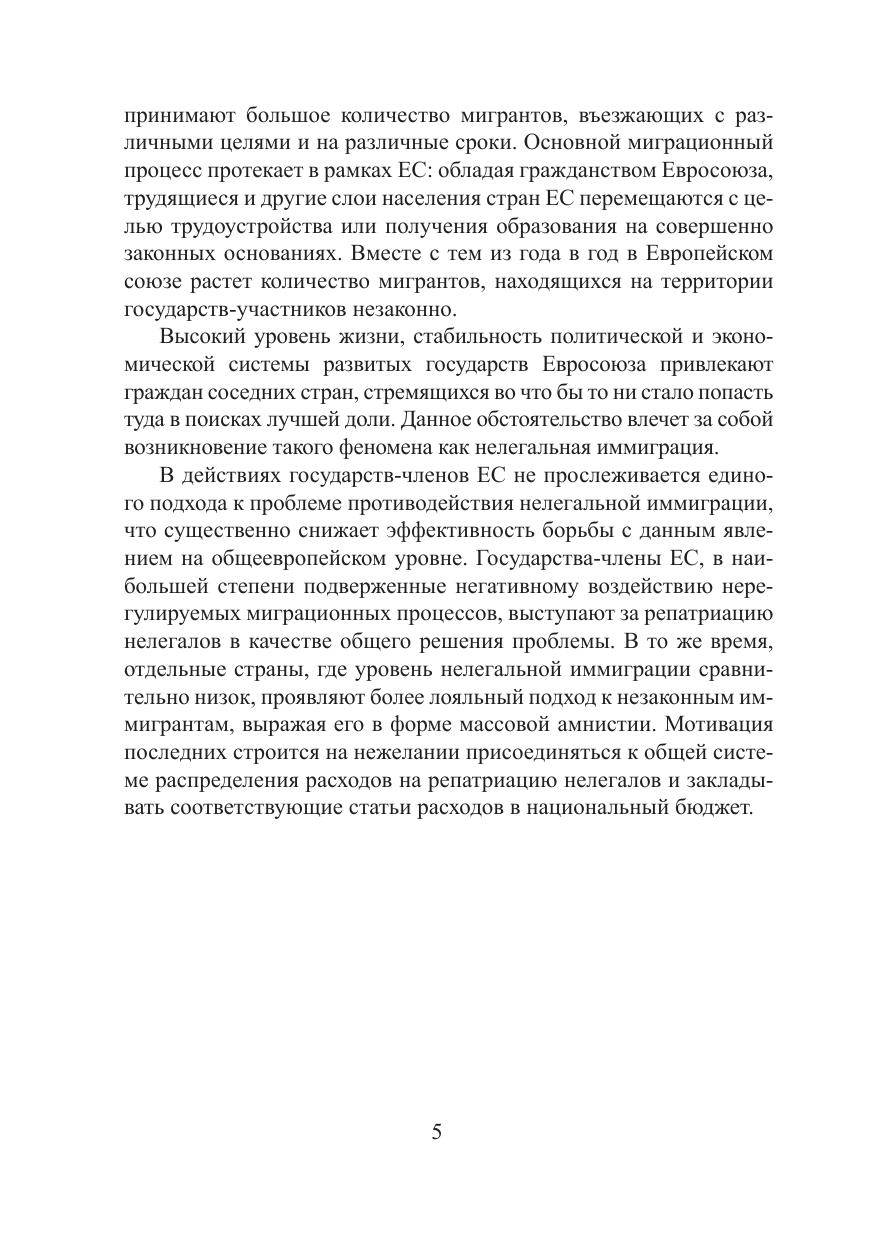 Настоящая работа представляет собой комплексное исследование правовых основ и механизмов противодействия нелегальной иммиграции в рамках Европейского союза путем проведения обзора и анализа действующего европейского законодательства. Также в монографии рассмотрен аспект международно-правового регулирования противодействия нелегальной иммиграции. Книга может быть полезна студентам и аспирантам юридических вузов и факультетов, а также сотрудникам правоохранительных органов.