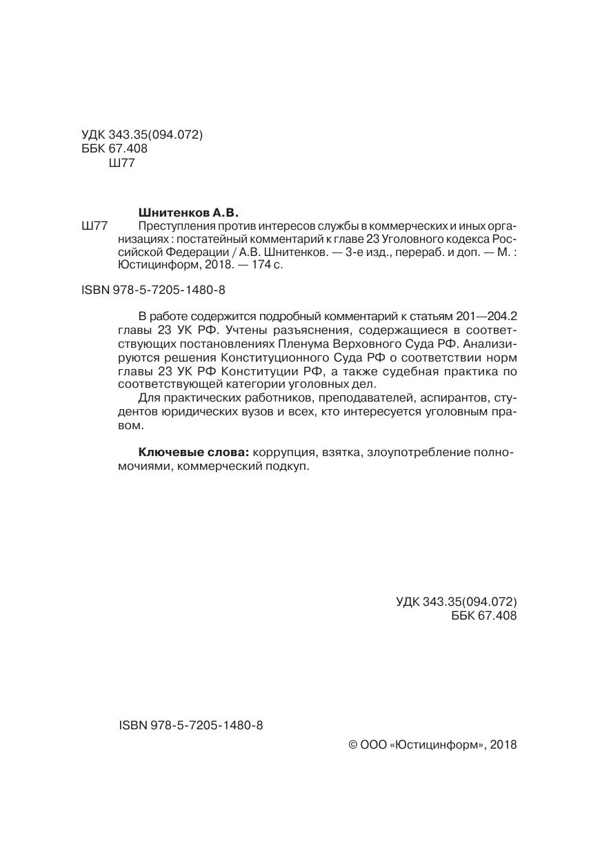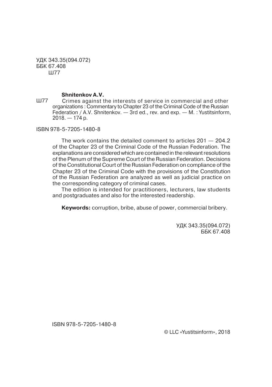 В работе содержится подробный комментарий к статьям 201—204.2 главы 23 УК РФ. Учтены разъяснения, содержащиеся в соответствующих постановлениях Пленума Верховного Суда РФ. Анализируются решения Конституционного Суда РФ о соответствии норм главы 23 УК РФ Конституции РФ, а также судебная практика по соответствующей категории уголовных дел.