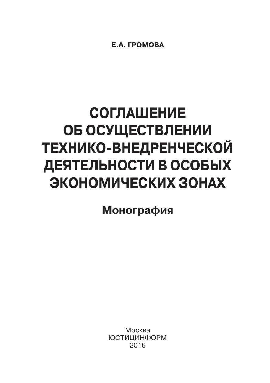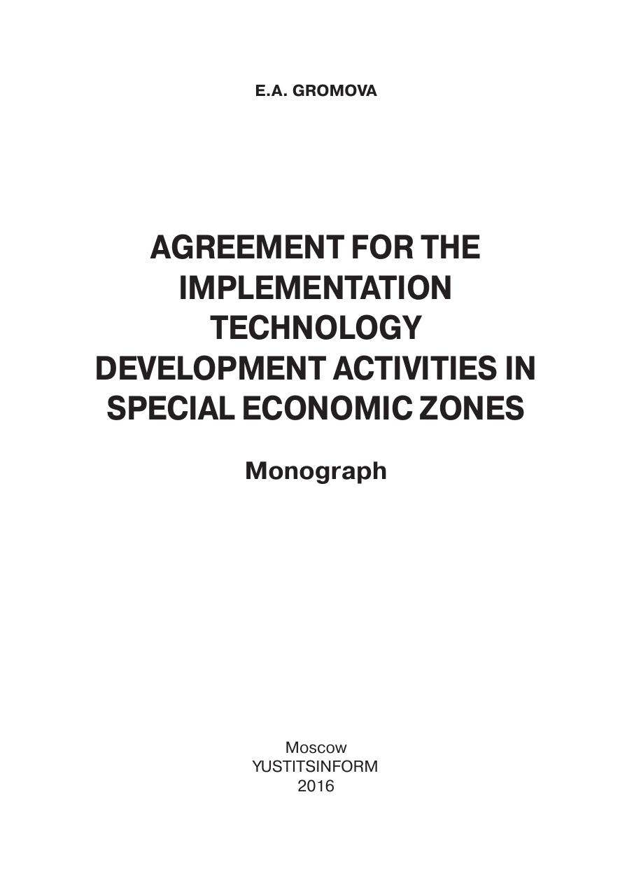 Соглашение об осуществлении технико-внедренческой деятельности в особых экономических зонах: монография