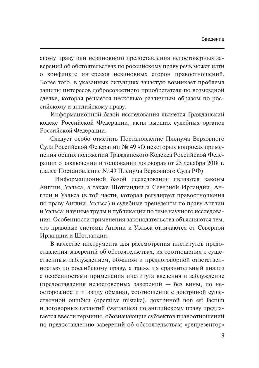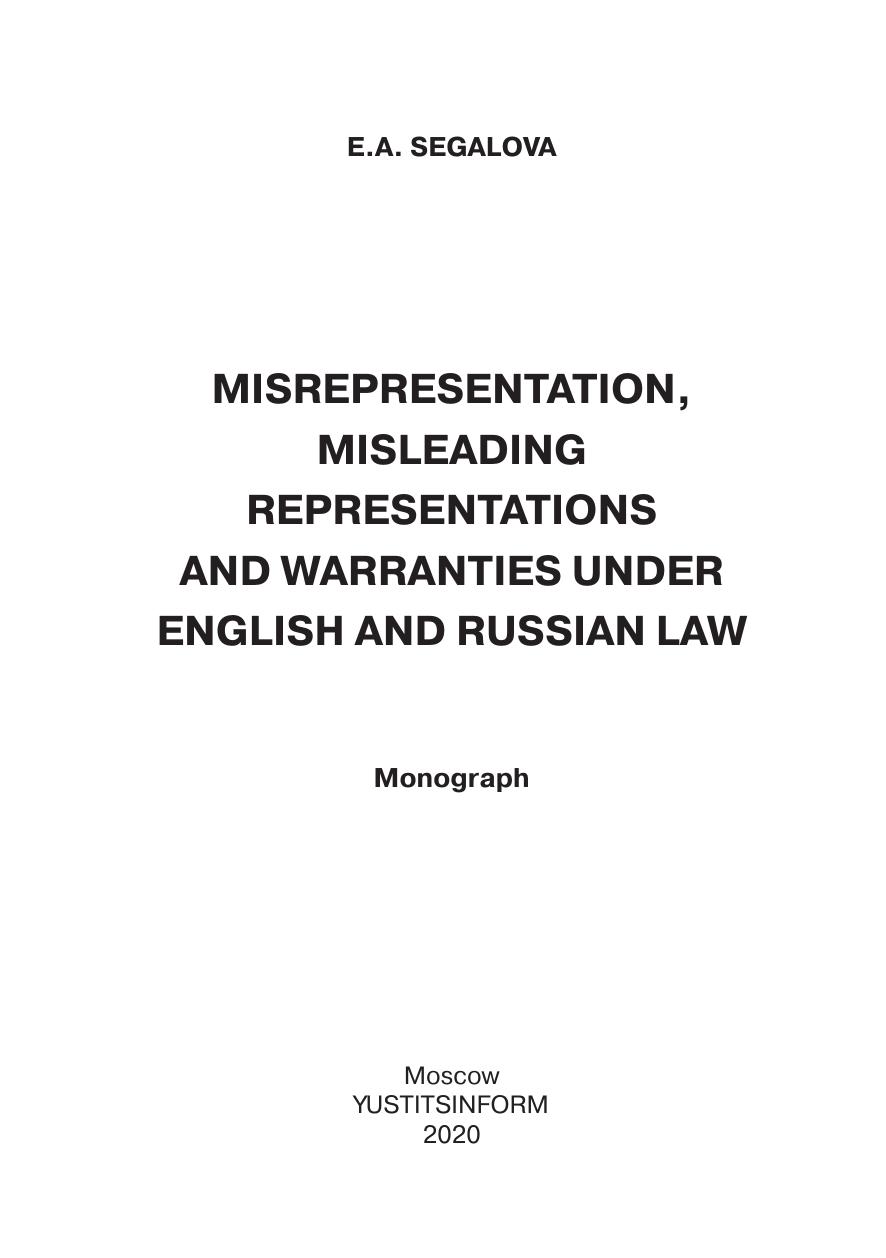 Введение в заблуждение, предоставление недостоверных заверений и гарантий в английском и российском праве