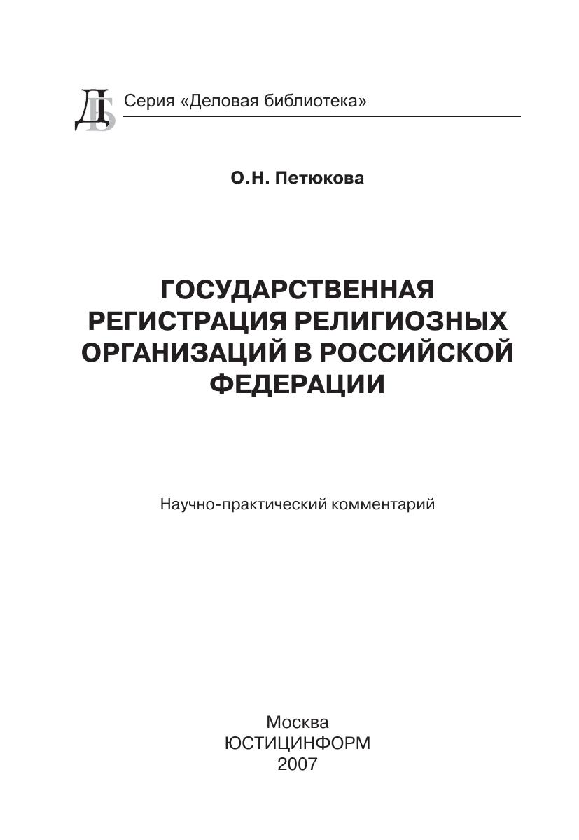 Государственная регистрация религиозных организаций в Российской Федерации: Научно-практический комментарий Петюкова О.Н.