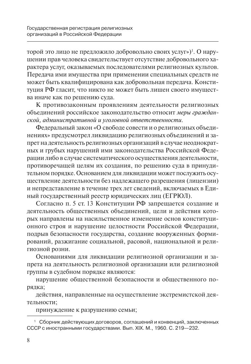 Книга посвящена одной из важных проблем современного российского права — государственной регистрации религиозных организаций в Российской Федерации. Рассмотрен порядок регистрации религиозных организаций при их создании, реорганизации и ликвидации, проанализированы меры гражданско-правовой, административной, уголовной ответственности за нарушение регистрационного законодательства о юридических лицах в целом и религиозных организациях в частности.Особое внимание уделено вопросам совершенствования регистрационного законодательства религиозных организаций в контексте общественной безопасности и правопорядка.Книга предназначена для работников государственных и муниципальных органов власти, которые призваны решать вопросы в области конфессиональных отношений, для юристов, правозащитников, научных работников, преподавателей, студентов и аспирантов, а также для тех, кто интересуется проблемами реализации свободы совести и вероисповедания.