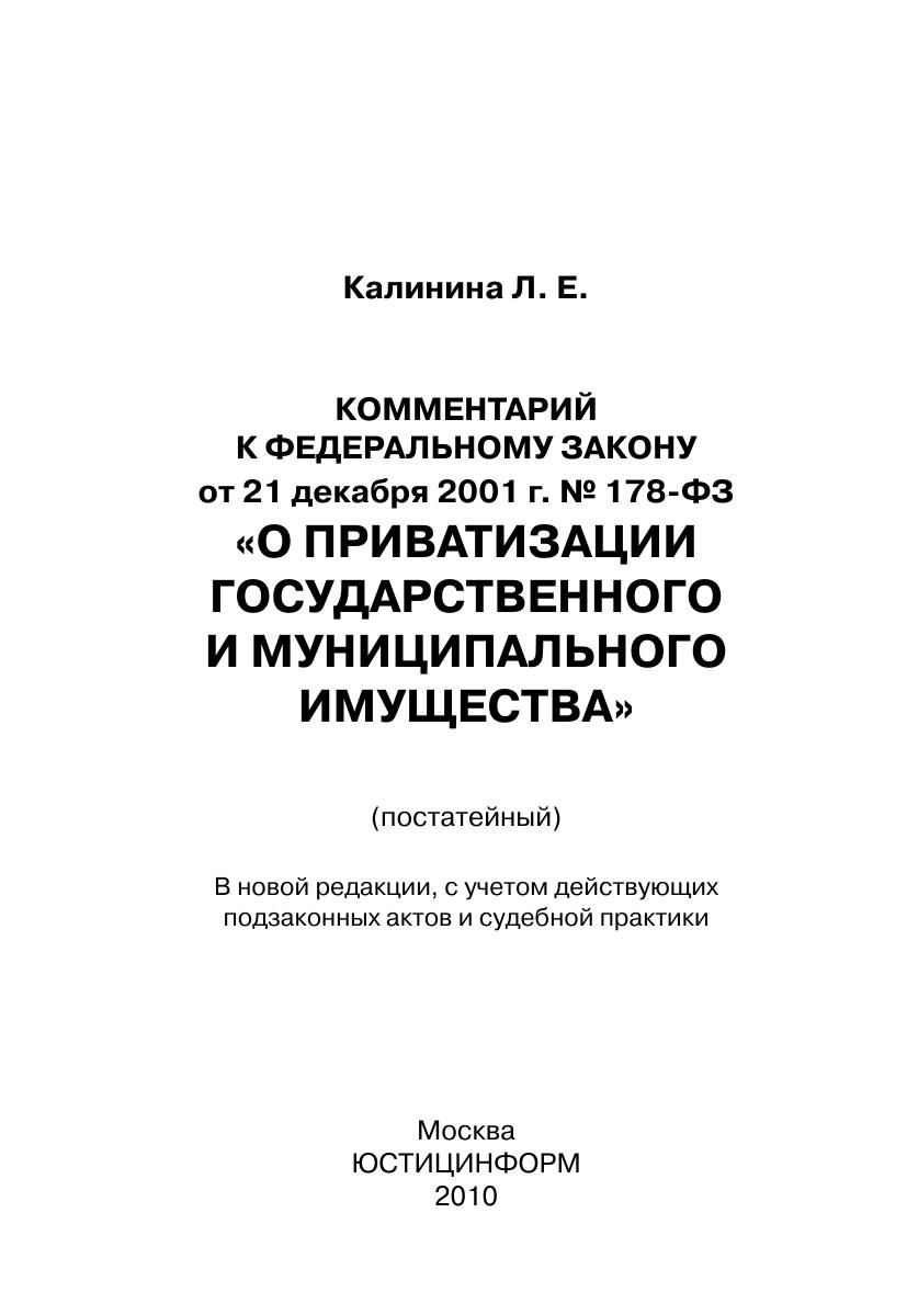 Комментарий к Федеральному закону от 21 декабря 2001 г. № 178-ФЗ «О приватизации государственного и муниципального имущества» (постатейный)