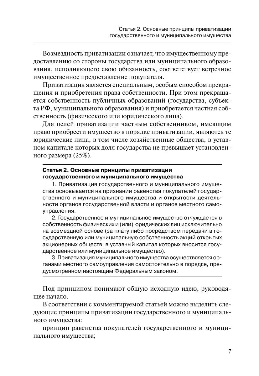 В книге последовательно комментируются статьи Федерального закона от 21 декабря 2001 г. № 178-ФЗ «О приватизации государственного и муниципального имущества» в актуальной редакции. В работе использованы законы и подзаконные акты, необходимые для реализации приватизационных отношений, судебная практика арбитражных судов. Комментарии поясняют применение норм, закрепленных в Законе. Комментарий рассчитан на юристов-профессионалов, предпринимателей, работников органов государственной власти, судов, а также научных работников, преподавателей и студентов.