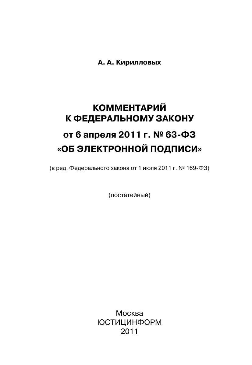 Комментарий к Федеральному закону от 6 апреля 2011 г. № 63-ФЗ «Об электронной подписи» (постатейный)