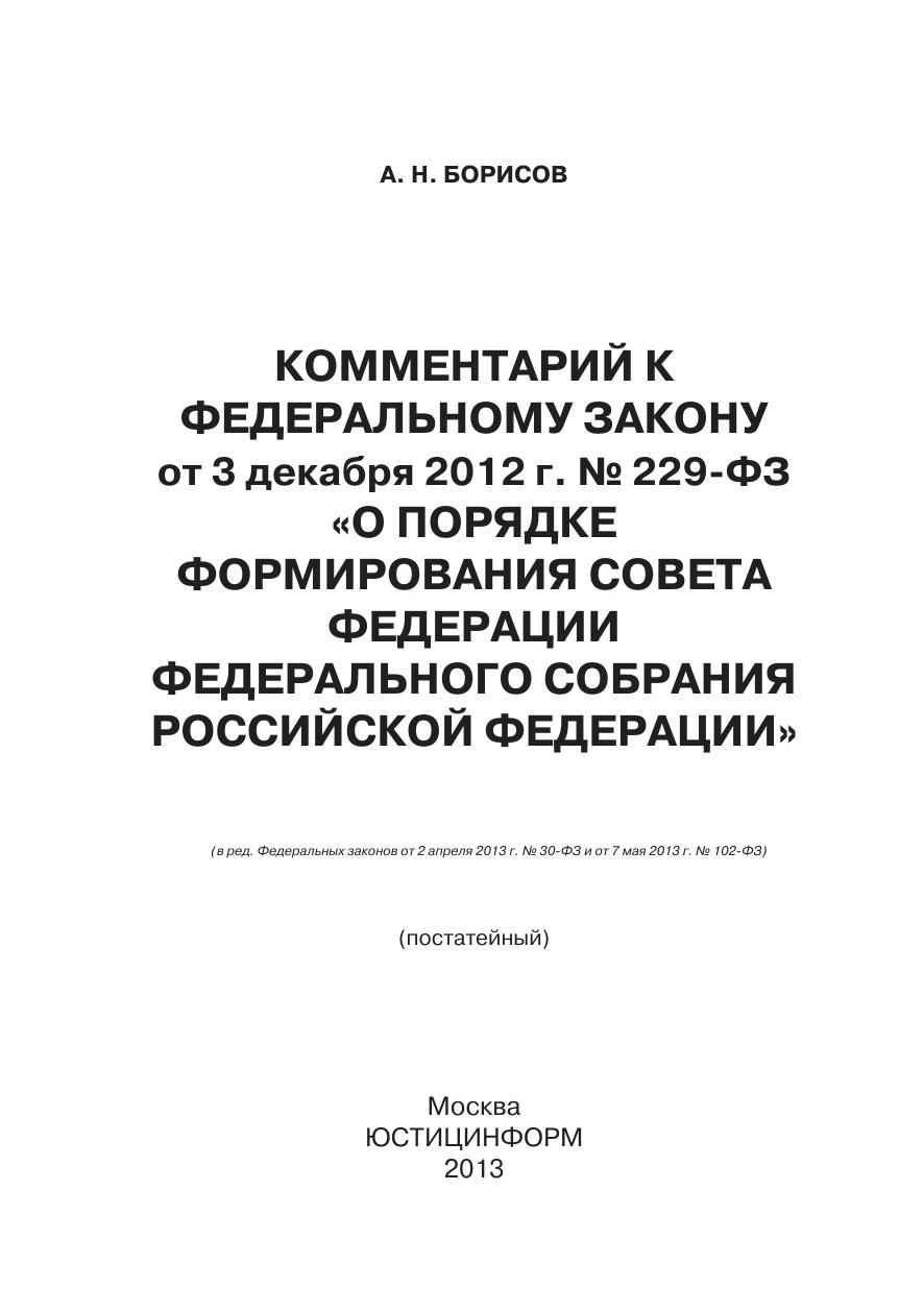 Комментарий к федеральному закону от 3 декабря 2012 г. № 229-ФЗ О порядке формирования совета федерации федерального собрания российской федерации