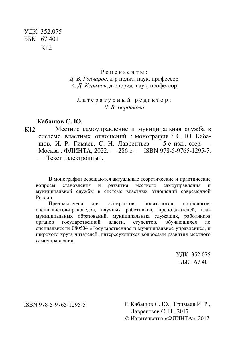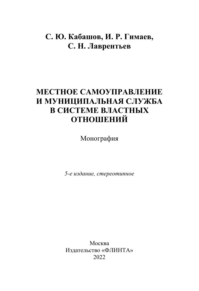 В монографии освещаются актуальные теоретические и практические вопросы становления и развития местного самоуправления и муниципальной службы в системе властных отношений современной России.
