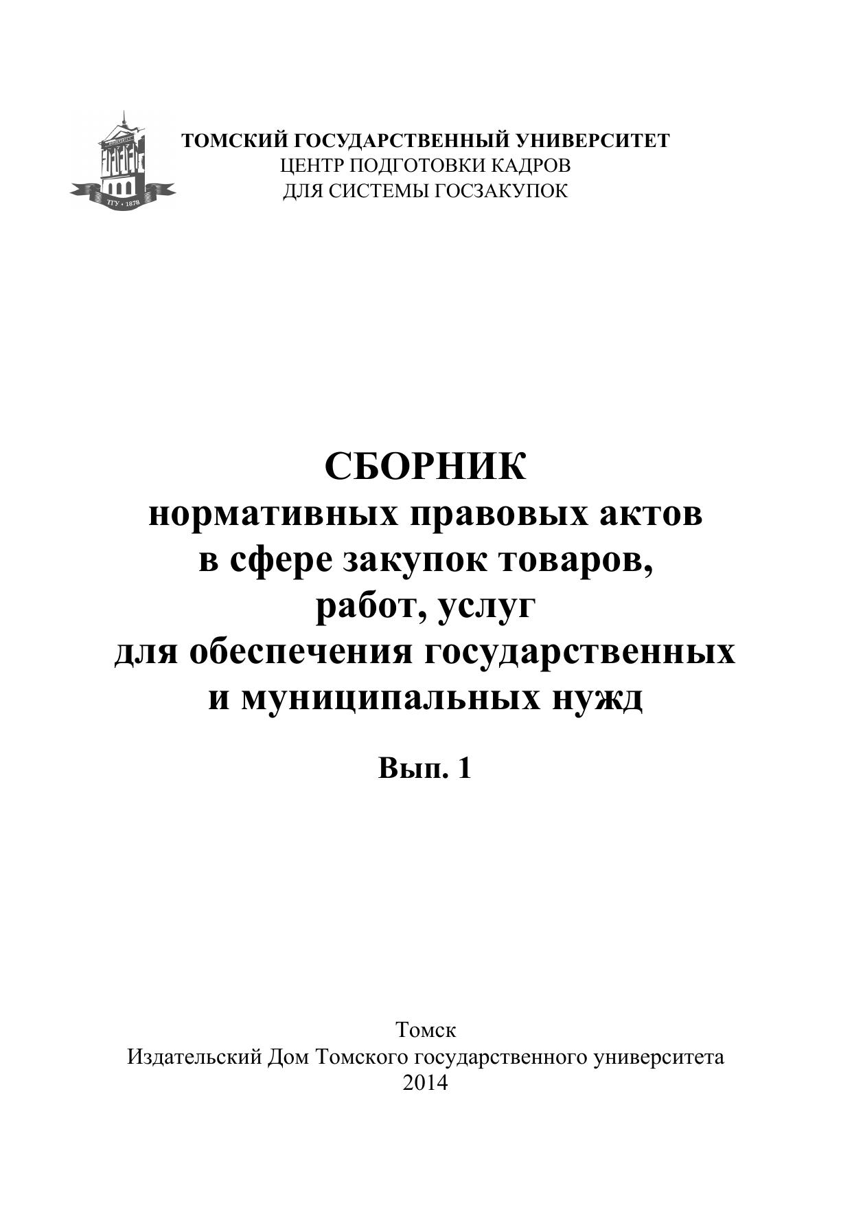 Сборник нормативных правовых актов в сфере закупок товаров, работ, услуг для обеспечения государственных и муниципальных нужд. Вып. 1