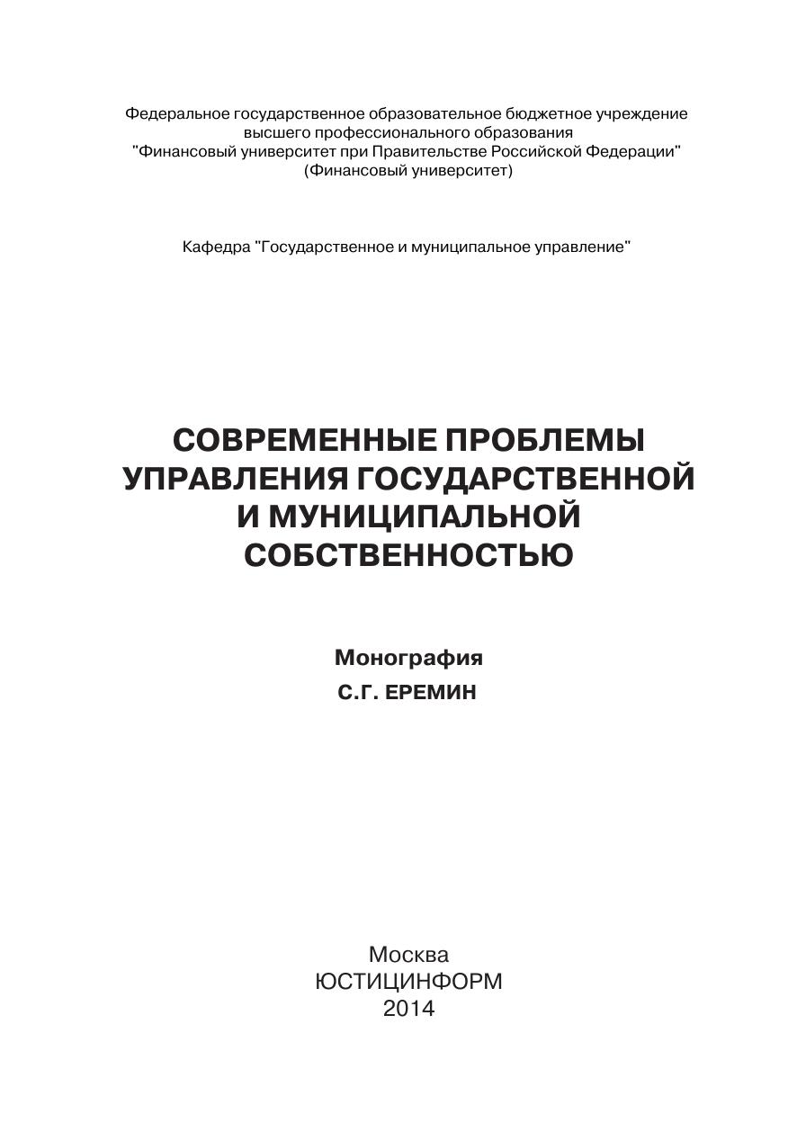 Современные проблемы управления государственной и муниципальной собственностью: монография