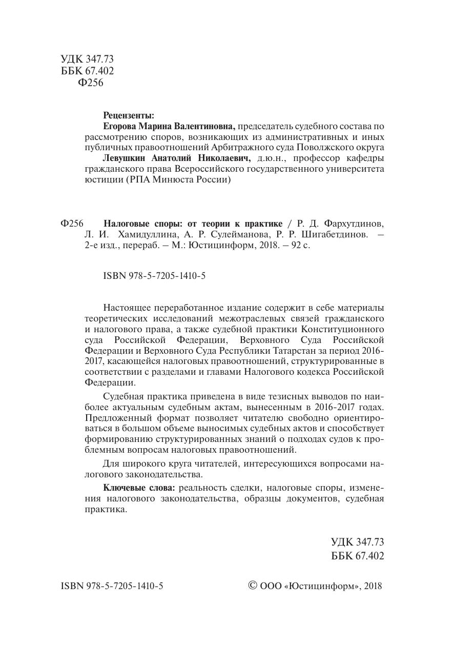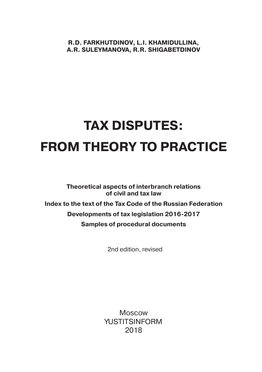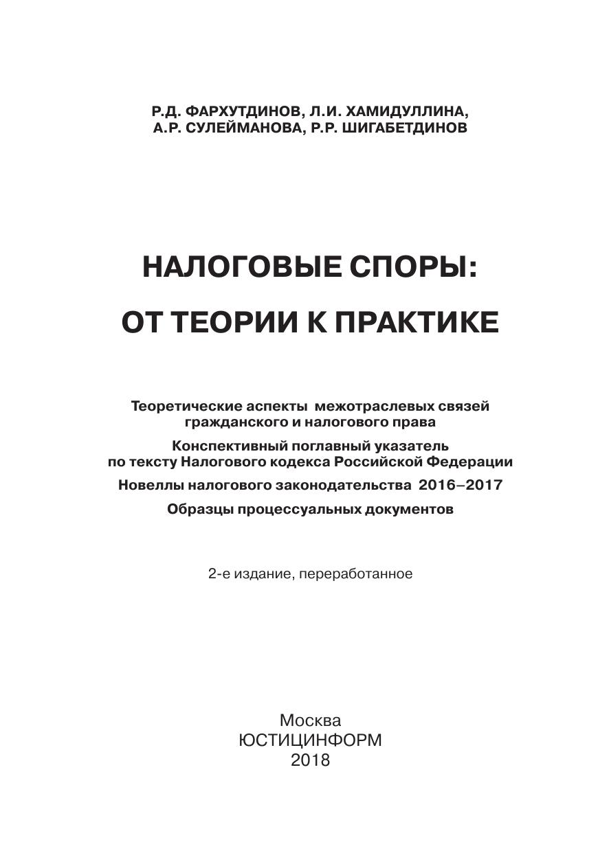 Настоящее переработанное издание содержит в себе материалы теоретических исследований межотраслевых связей гражданского и налогового права, а также судебной практики Конституционного суда Российской Федерации, Верховного Суда Российской Федерации и Верховного Суда Республики Татарстан за период 2016-2017, касающейся налоговых правоотношений, структурированные в соответствии с разделами и главами Налогового кодекса Российской Федерации.