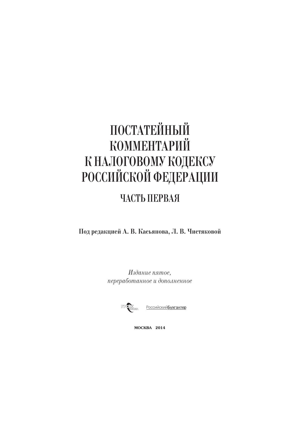 В книге дан подробный постатейный комментарий к Налоговому кодексу РФ. Учтены изменения в законодательстве, внесенные в текст Налогового кодекса РФ в 2013–2014 годах. Комментарий к главам Налогового кодекса РФ приведен с учетом разъяснений чиновников Минфина РФ и ФНС России, судебной и арбитражной практики. Особое внимание авторы уделили тем изменениям, которые вступят в силу с начала 2015 года. Текст действующей редакции Налогового кодекса РФ приведен посостоянию на начало декабря 2014 года. Книга рассчитана на руководителей, юристов, экономистов, бухгалтеров организаций, работников налоговых инспекций, таможни, государственных внебюджетных фондов, всех налогоплательщиков.