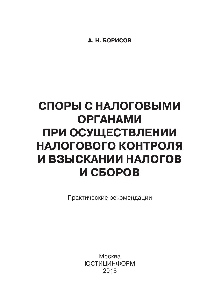Споры с налоговыми органами при осуществлении налогового контроля и взыскании налогов и сборов: практические рекомендации
