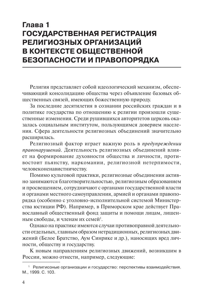 Книга посвящена одной из важных проблем современного российского права — государственной регистрации религиозных организаций в Российской Федерации. Рассмотрен порядок регистрации религиозных организаций при их создании, реорганизации и ликвидации, проанализированы меры гражданско-правовой, административной, уголовной ответственности за нарушение регистрационного законодательства о юридических лицах в целом и религиозных организациях в частности.Особое внимание уделено вопросам совершенствования регистрационного законодательства религиозных организаций в контексте общественной безопасности и правопорядка.Книга предназначена для работников государственных и муниципальных органов власти, которые призваны решать вопросы в области конфессиональных отношений, для юристов, правозащитников, научных работников, преподавателей, студентов и аспирантов, а также для тех, кто интересуется проблемами реализации свободы совести и вероисповедания.