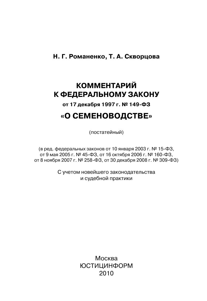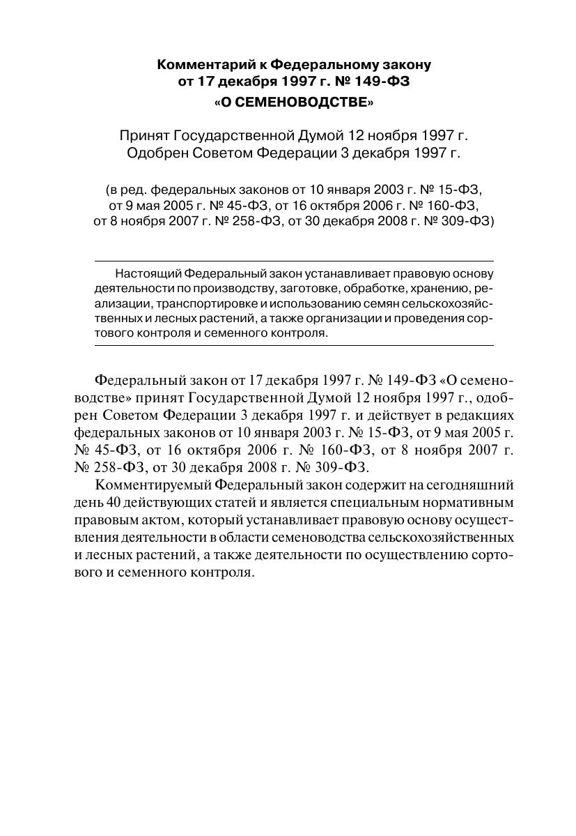Комментарий к Федеральному закону от 17 декабря 1997 г. № 149-ФЗ «О семеноводстве» (постатейный)