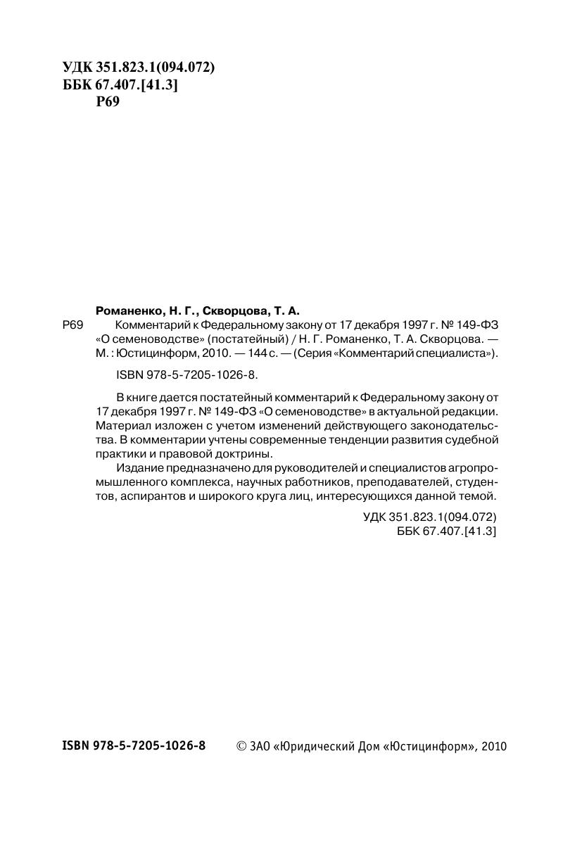 В книге дается постатейный комментарий к Федеральному закону от 17 декабря 1997 г. № 149-ФЗ «О семеноводстве» в актуальной редакции. Материал изложен с учетом изменений действующего законодательства. В комментарии учтены современные тенденции развития судебной практики и правовой доктрины. Издание предназначено для руководителей и специалистов агропромышленного комплекса, научных работников, преподавателей, студентов, аспирантов и широкого круга лиц, интересующихся данной темой.