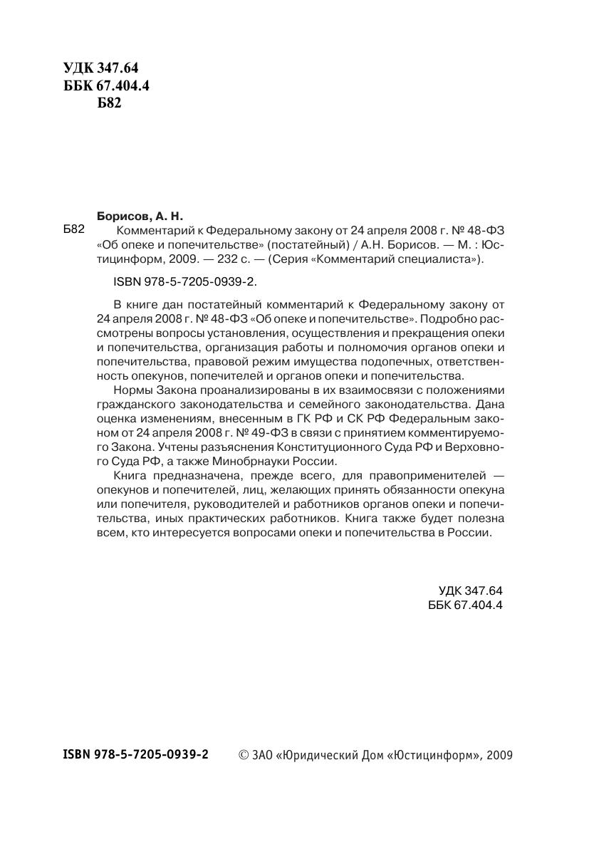 Комментарий к Федеральному закону от 24 апреля 2008 г. № 48-ФЗ «Об опеке и попечительстве» (постатейный)