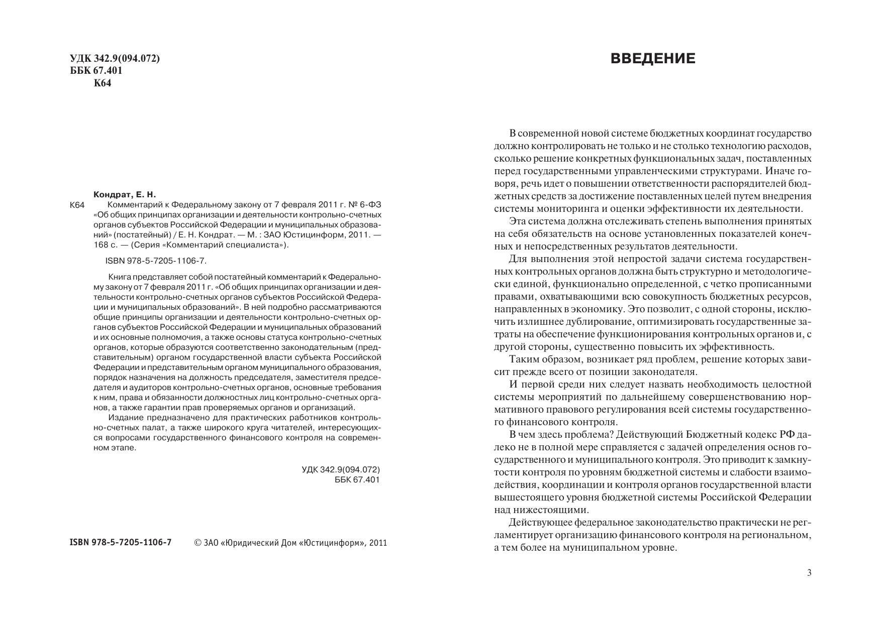 Комментарий к Федеральному закону от 7 февраля 2011 г. № 6-ФЗ «Об общих принципах организации и деятельности контрольно-счетных органов субъектов Российской Федерации и муниципальных образований» (постатейный)