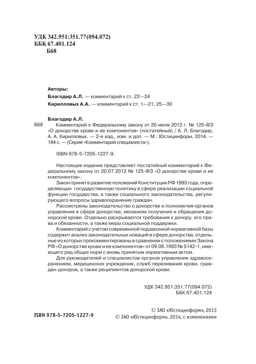 Комментарий к федеральному закону от 20 июля 2012 г. № 125-фЗ «о донорстве крови и ее компонентов» (постатейный)