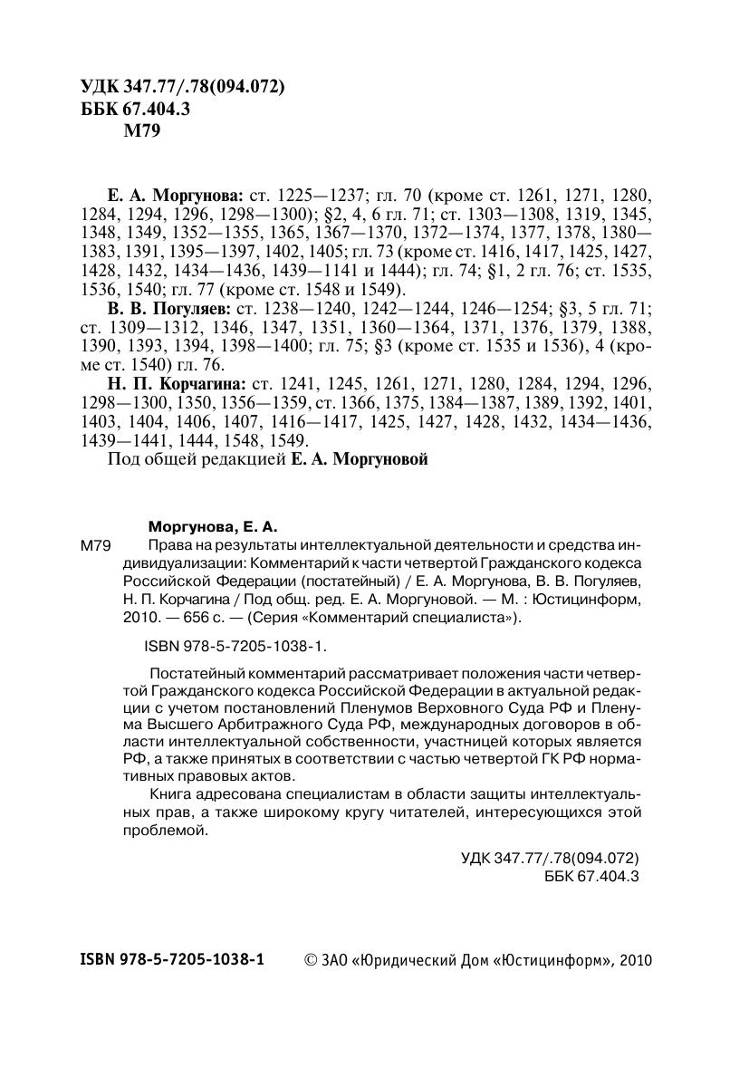 Постатейный комментарий рассматривает положения части четвертой Гражданского кодекса Российской Федерации в актуальной редакции с учетом постановлений Пленумов Верховного Суда РФ и Пленума Высшего Арбитражного Суда РФ, международных договоров в области интеллектуальной собственности, участницей которых является РФ, а также принятых в соответствии с частью четвертой ГК РФ нормативных правовых актов.Книга адресована специалистам в области защиты интеллектуальных прав, а также широкому кругу читателей, интересующихся этой проблемой.