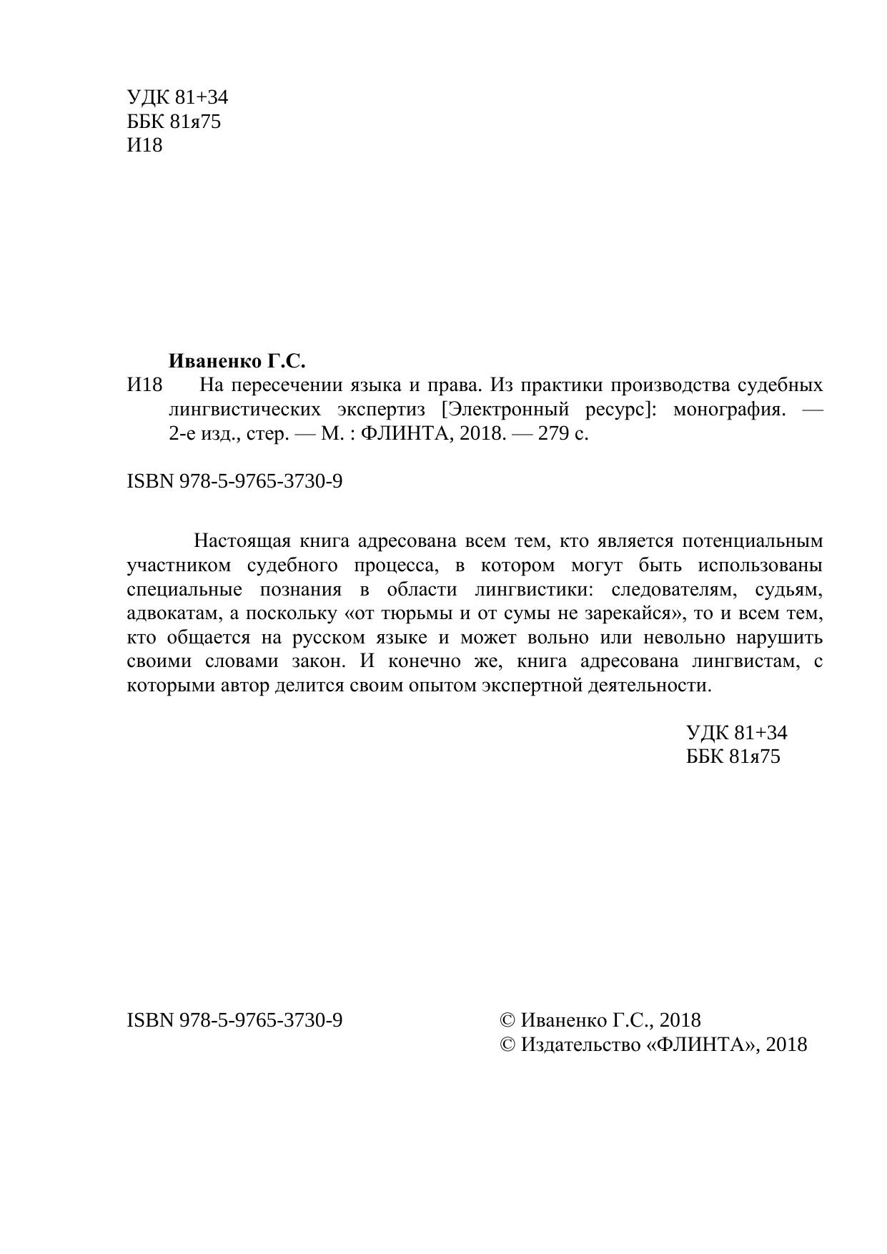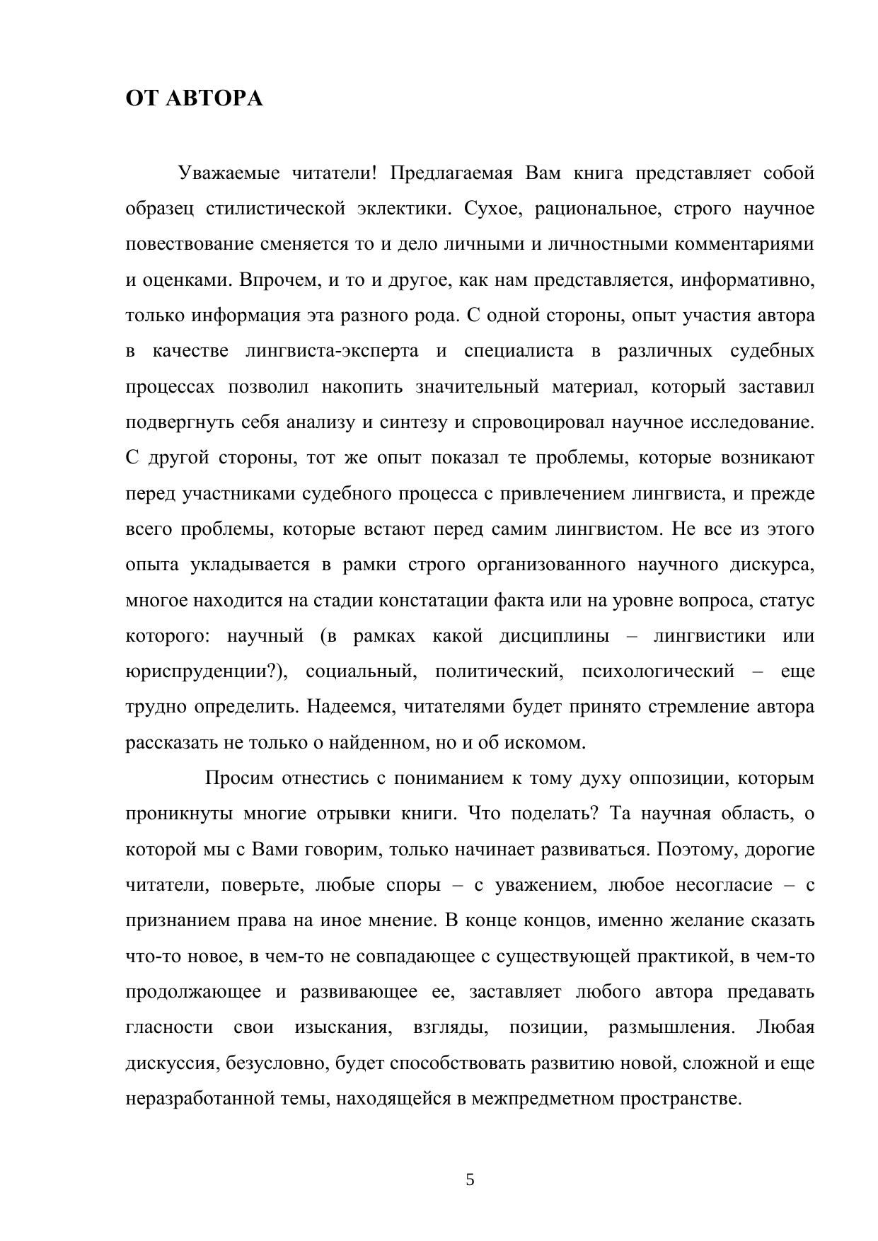 Настоящая книга адресована всем тем, кто является потенциальным участником судебного процесса, в котором могут быть использованы специальные познания в области лингвистики: следователям, судьям, адвокатам, а поскольку «от тюрьмы и от сумы не зарекайся», то и всем тем, кто общается на русском языке и может вольно или невольно нарушить своими словами закон. И конечно же, книга адресована лингвистам, с которыми автор делится своим опытом экспертной деятельности.