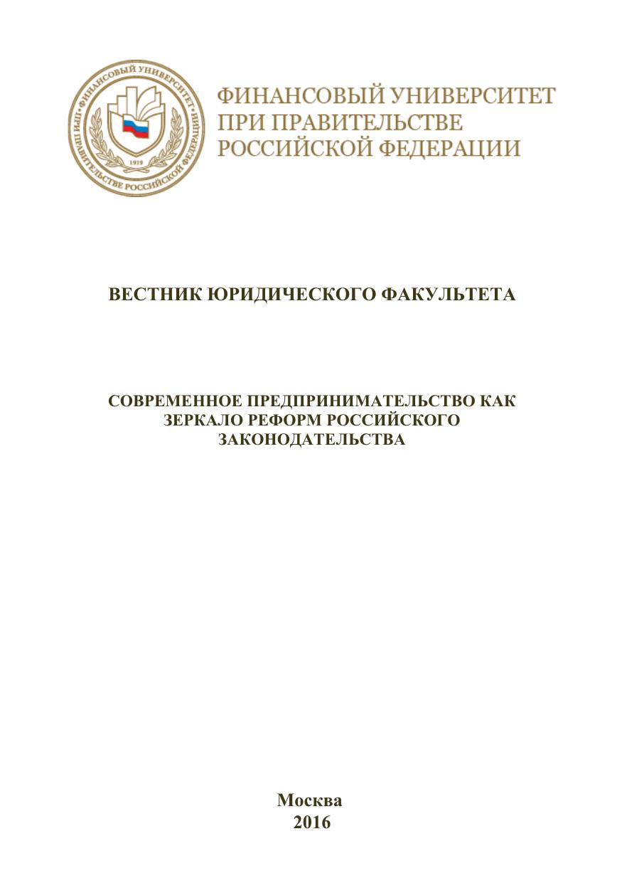Современное предпринимательство как зеркало реформ Российского законодательства. Вестник юридического факультета (г. Москва, Финансовый университет при Правительстве Российской Федерации)