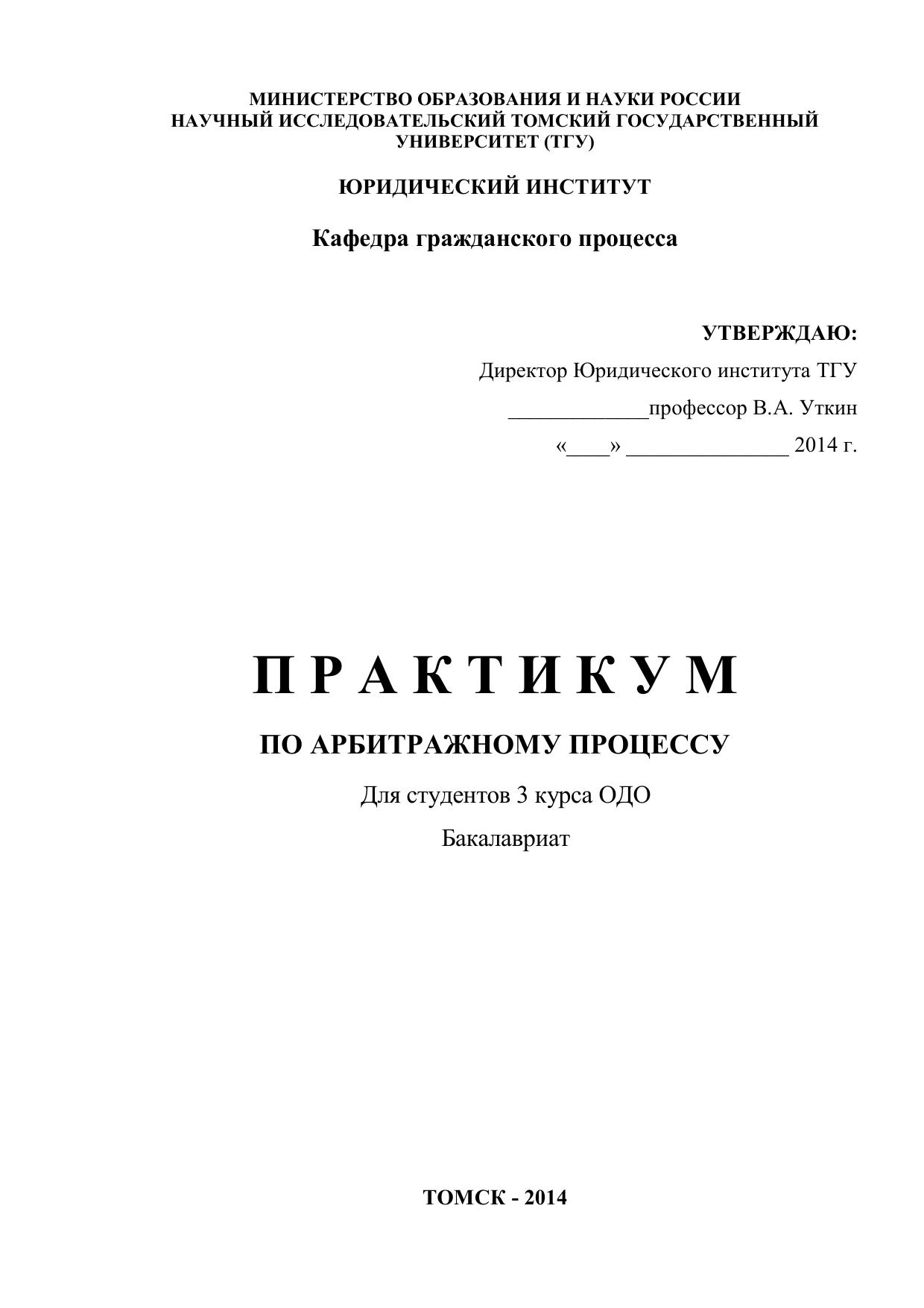 Практикум по арбитражному процессу (для студентов 3 курса ОДО)