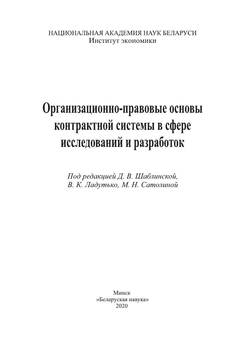 Организационно-правовые основы контрактной системы в сфере исследований и разработок