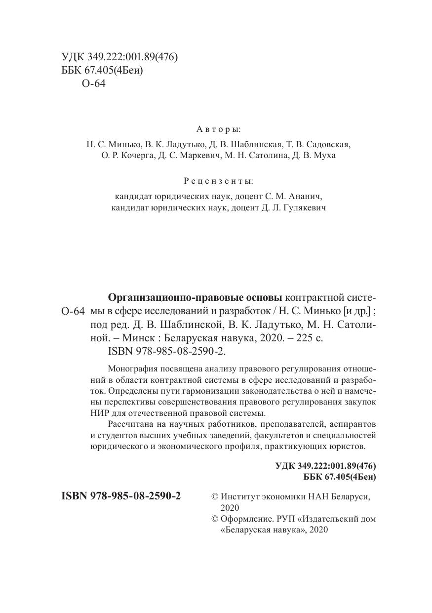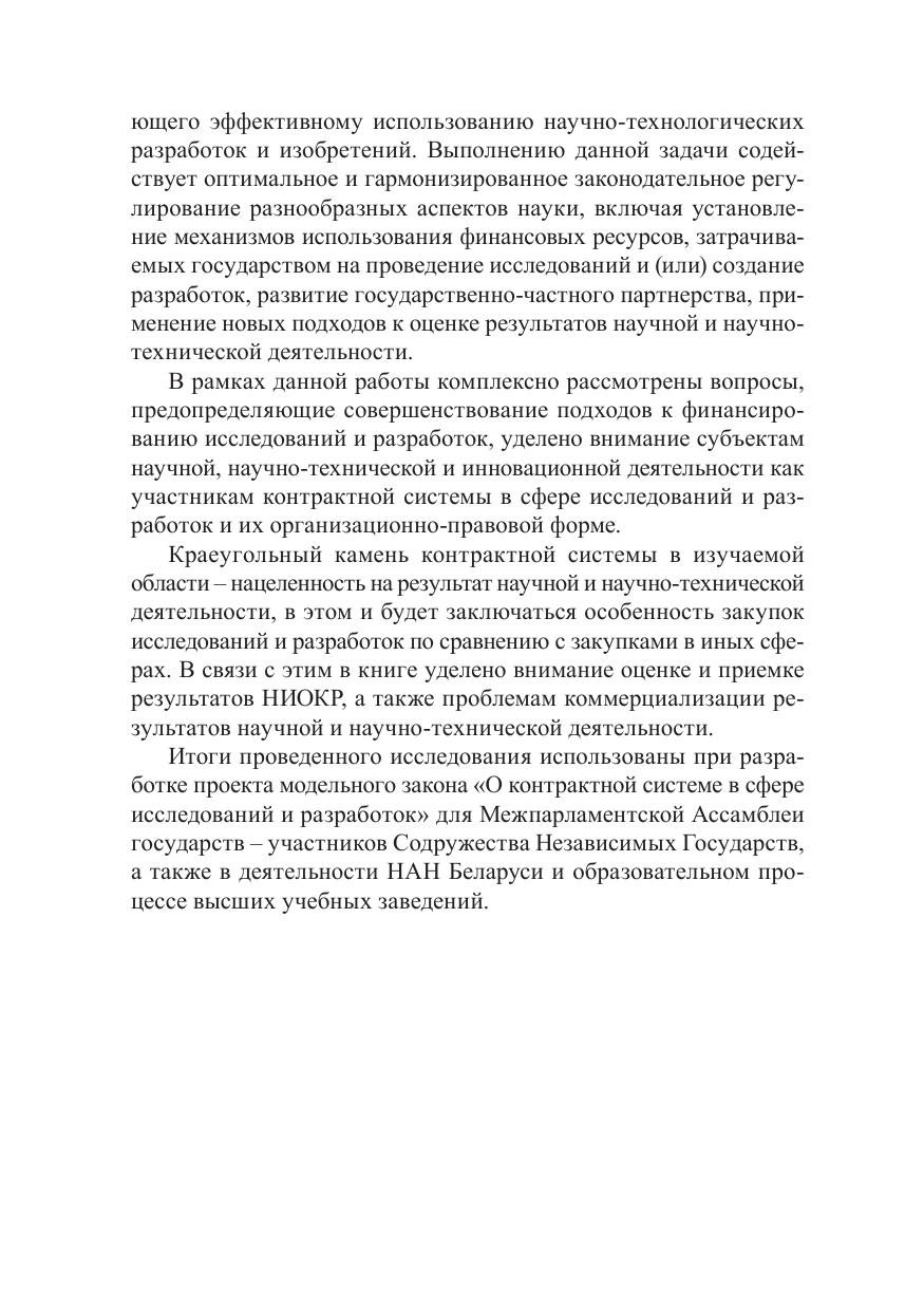 Монография посвящена анализу правового регулирования отношений в области контрактной системы в сфере исследований и разработок. Определены пути гармонизации законодательства о ней и намечены перспективы совершенствования правового регулирования закупок НИР для отечественной правовой системы.