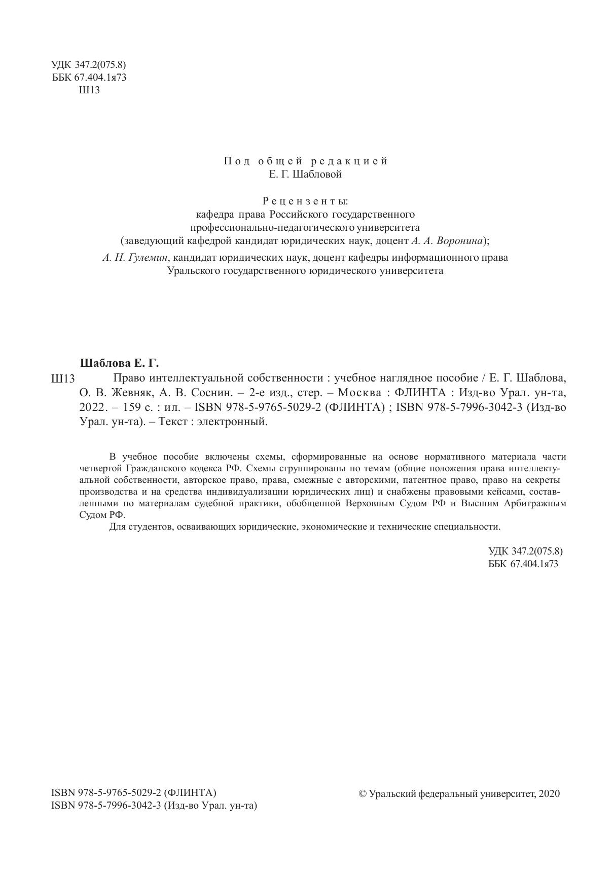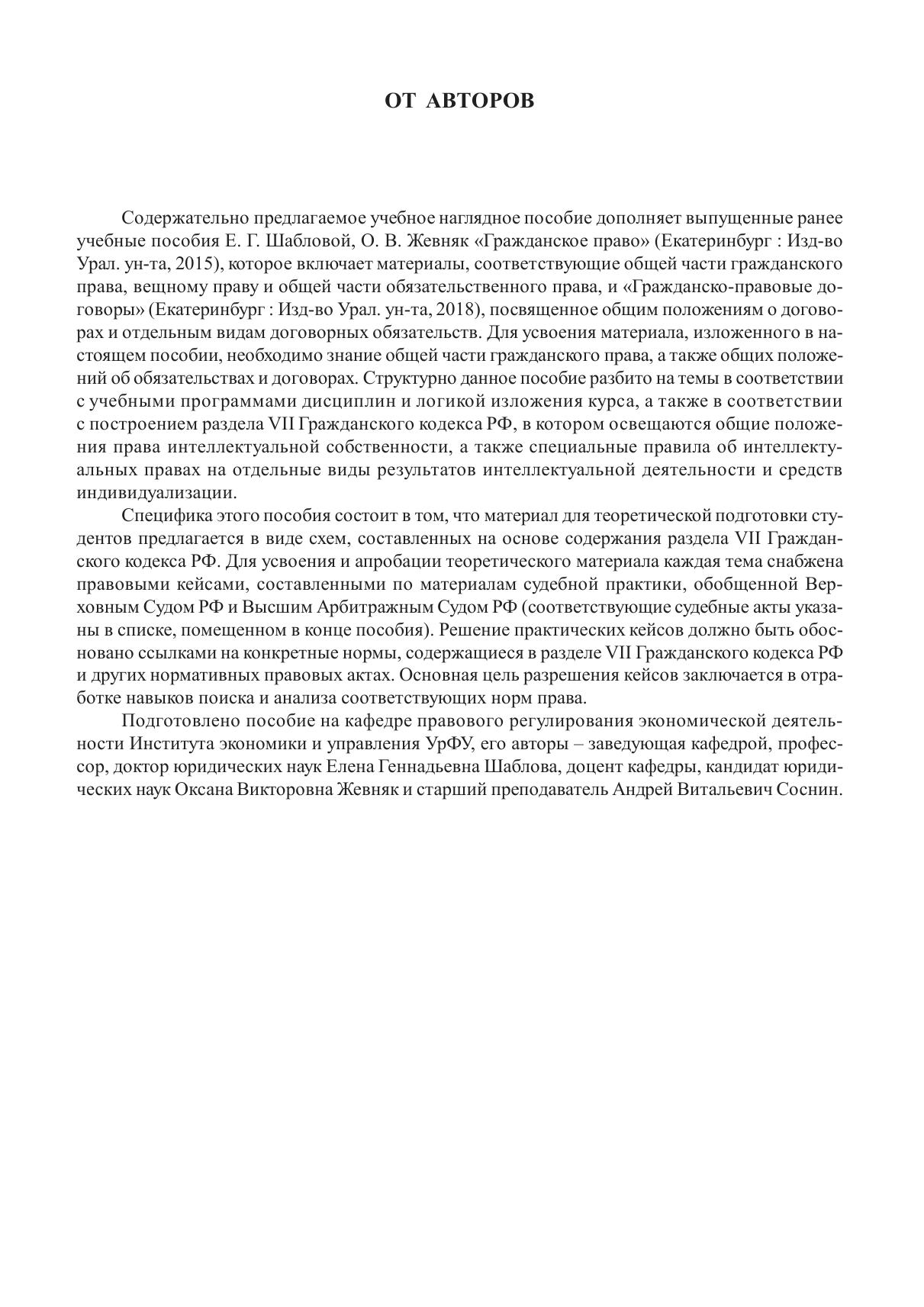 В учебное пособие включены схемы, сформированные на основе нормативного материала части четвертой Гражданского кодекса РФ. Схемы сгруппированы по темам (общие положения права интеллектуальной собственности, авторское право, права, смежные с авторскими, патентное право, право на секреты производства и на средства индивидуализации юридических лиц) и снабжены правовыми кейсами, составленными по материалам судебной практики, обобщенной Верховным Судом РФ и Высшим Арбитражным Судом РФ. Для студентов, осваивающих юридические, экономические и технические специальности.