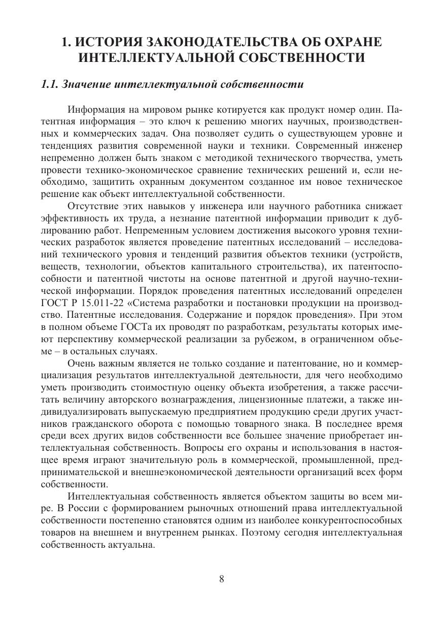 Изложены основы правового регулирования и правового обеспечения интеллектуальной собственности, рассмотрены вопросы анализа патентной информации, организации и проведения патентных исследований, стоимостной оценки объектов интеллектуальной собственности, регистрации прав на интеллектуальную собственность, осуществления государственного регулирования отношений в сфере интеллектуальной собственности.