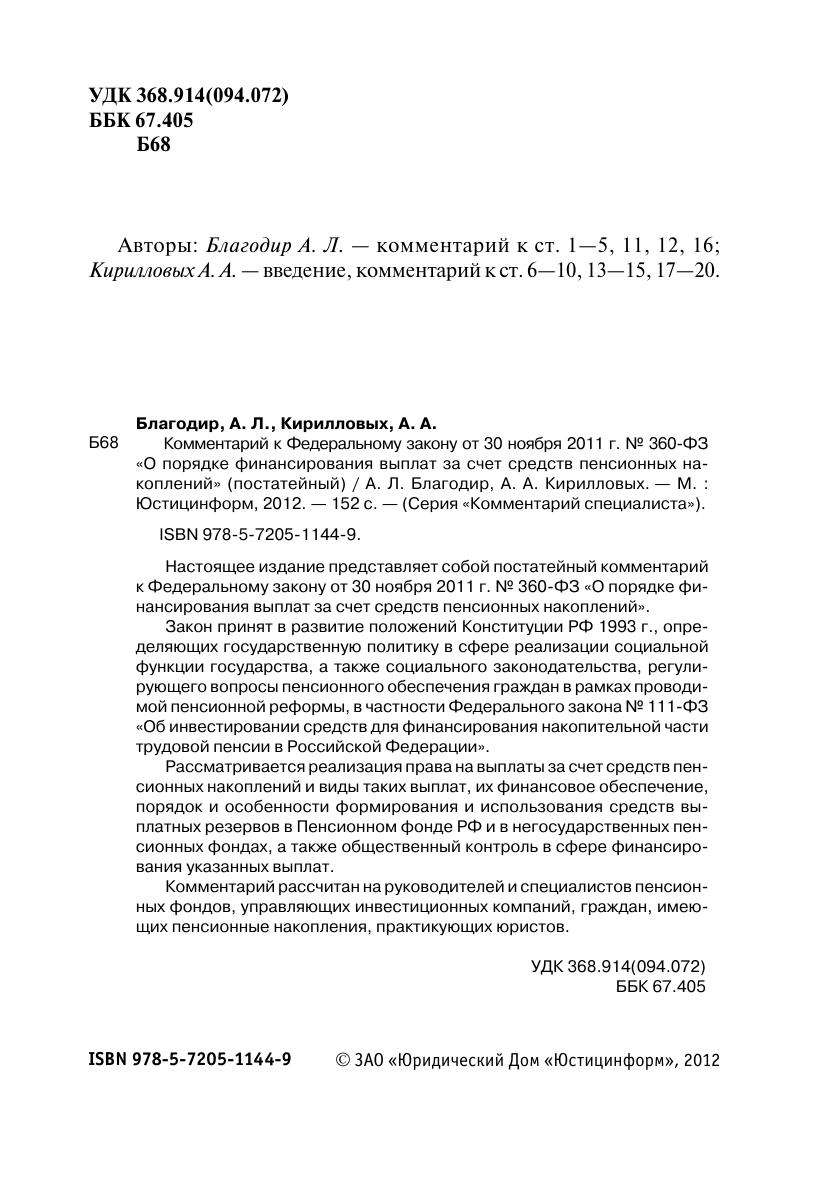 Настоящее издание представляет постатейный комментарий к Федеральному закону от 24 июля 2002 г. № 111-ФЗ «Об инвестировании средств для финансирования накопительной части трудовой пенсии в Российской Федерации», с учетом изменений в нормативных актах по состоянию на 1 февраля 2010 г. Закон принят в развитие положений Конституции РФ 1993 г., формирующих государственную политику в сфере реализации социальной функции государства, а также законодательства по социальному обеспечению, регулирующего вопросы пенсионного обеспечения и прав граждан в рамках проводимой пенсионной реформы. Регламентируются вопросы государственного и общественного контроля в сфере формирования и передачи средств пенсионных накоплений управляющим компаниям обязательственные правоотношения в рамках инвестирования права застрахованных лиц и выплаты пенсионных накоплений гражданам.Комментарий рассчитан на руководителей и специалистов пенсионных фондов, управляющих инвестиционных компаний, граждан, имеющих пенсионные накопления, практикующих юристов.