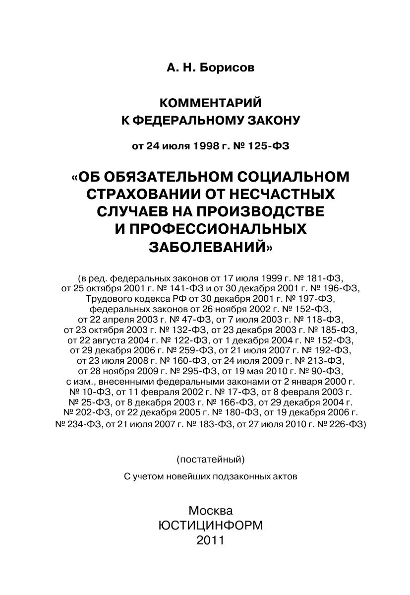 Комментарий к Федеральному закону от 24 июля 1998 г. № 125-ФЗ «Об обязательном социальном страховании от несчастных случаев на производстве и профессиональных заболеваний» (постатейный)