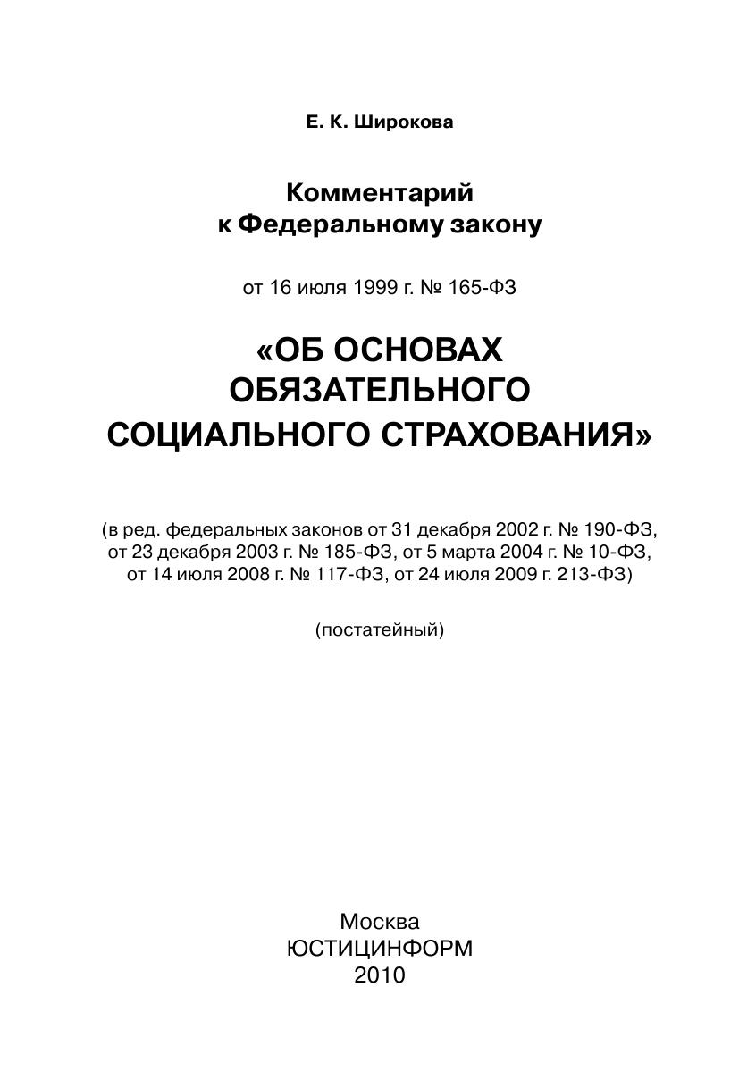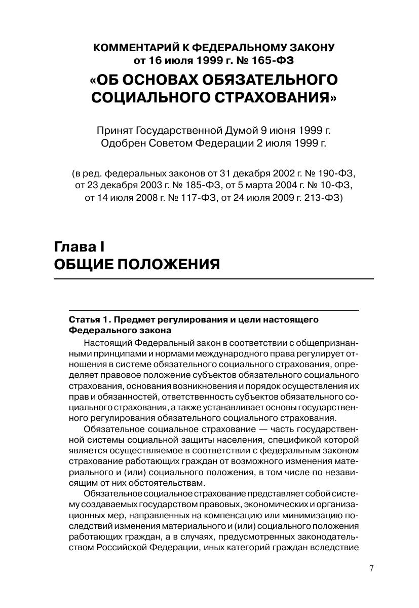 Комментарий к Федеральному закону от 16 июля 1999 г. № 165-ФЗ «Об основах обязательного социального страхования» (постатейный)