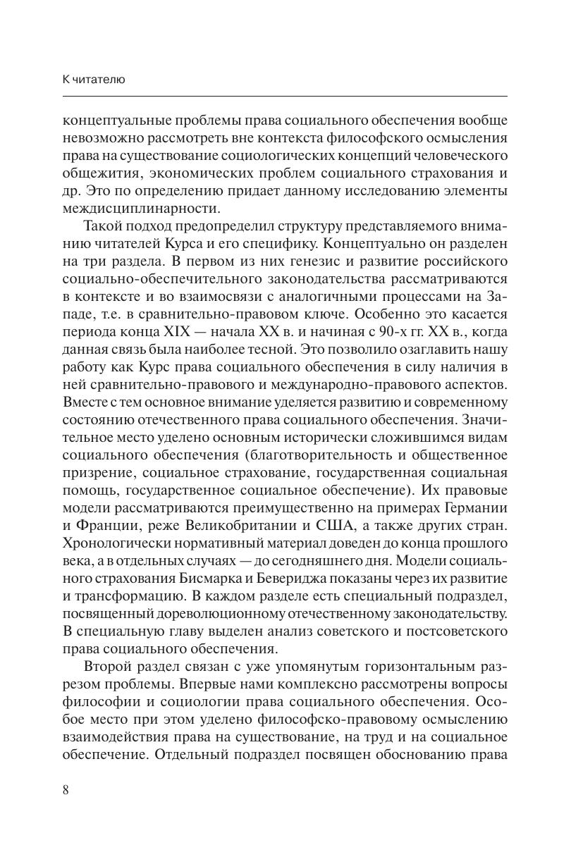 В данной книге на основе исторического и сравнительно-правового материала анализируются основные, фундаментальные проблемы права социального обеспечения России, а отчасти и стран Запада. Особое внимание обращено на исторически сложившиеся виды, типы и модели права социального обеспечения, эволюцию отраслевой теории и ее наиболее актуальные вопросы, современные тенденции развития российского социально-обеспечительного законодательства. Изложение материала построено на сочетании требований, предъявляемых к учебной литературе и монографическим исследованиям. Впервые рассматриваются в развитии проблемы философии и социологии права социального обеспечения.