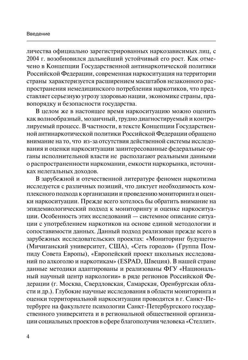 В научной монографии нашли отражение теоретические разработки проблем наркотизма, мониторинга и оценки наркоситуации. Обобщены результаты социологического мониторинга наркотизации молодежи, проведенного в Оренбургской области в течение 2003—2009 гг. Представлены предложения по организации мониторинга наркоситуации, система показателей для диагностики наркоситуации и оценки тенденций ее развития. Книга будет интересна специалистам, осуществляющим противодействие злоупотреблению наркотиками и их незаконному обороту, представителям органов государственной власти и местного самоуправления, всем читателям, интересующимся проблемами развития наркоситуации в современной России.